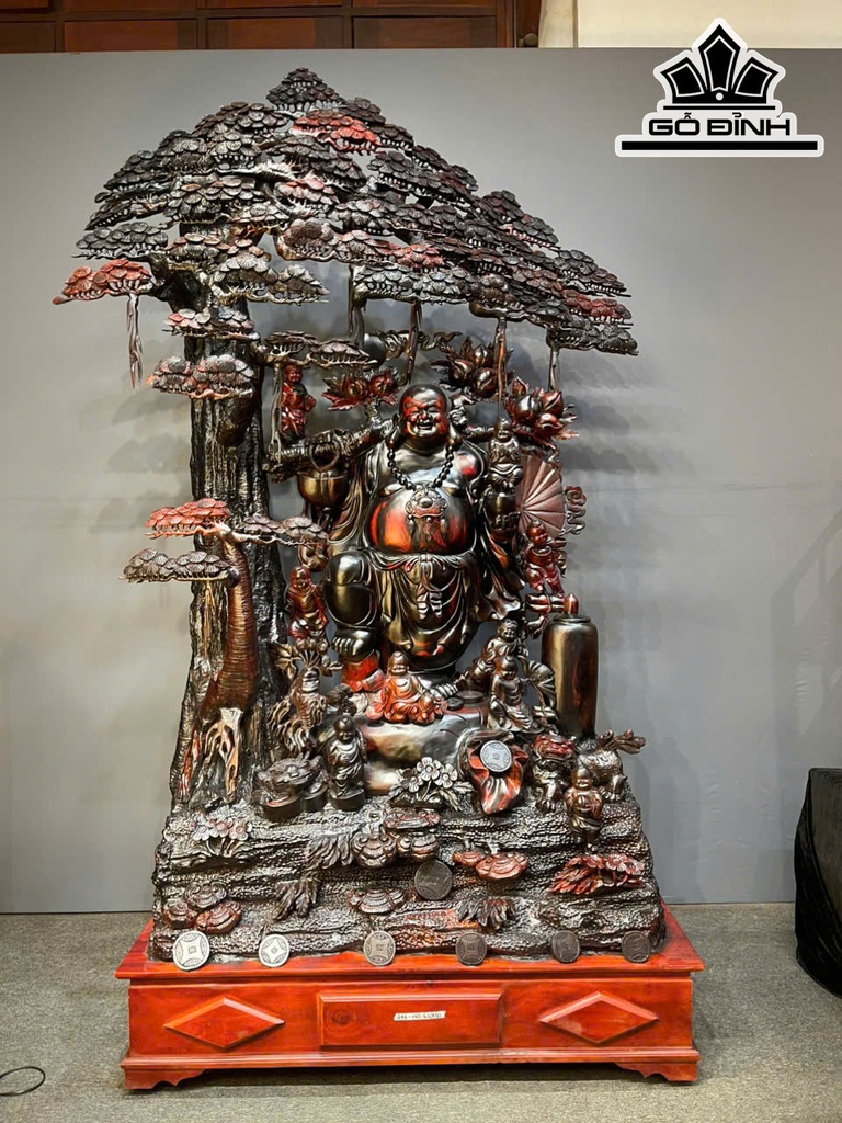 Tượng Phật Di Lặc Ngũ Phúc Gỗ Trắc Cao Cả Kỷ 246 Ngang 145 Sâu 62 (cm) - Kỷ Cao 30 cm)