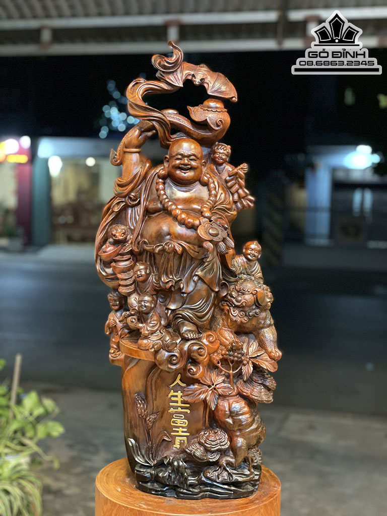 Tượng Phật Di Lặc Ngũ Phúc Gỗ Trắc Nguyên Khối