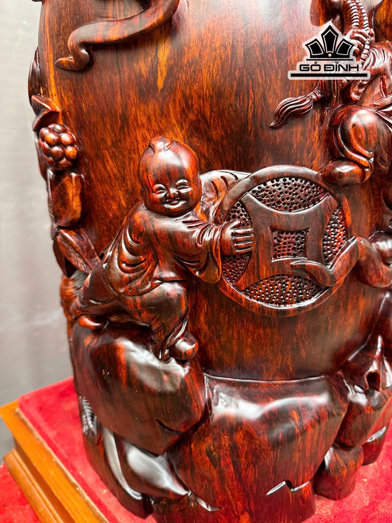 Tượng Phật Di Lặc Ngũ Phúc Gỗ Tử Đàn Cao 118 Ngang 35 Sâu 31 (cm) - 58kg