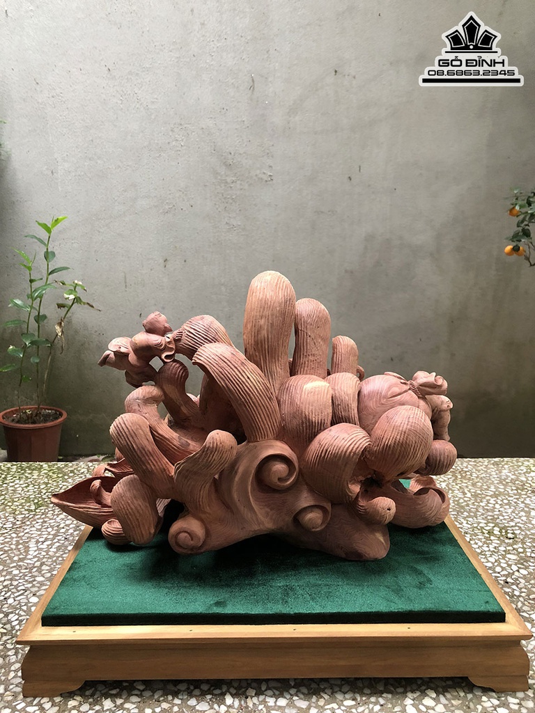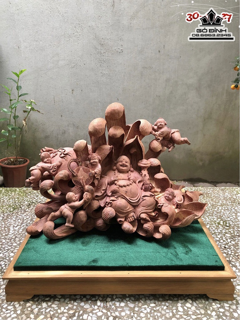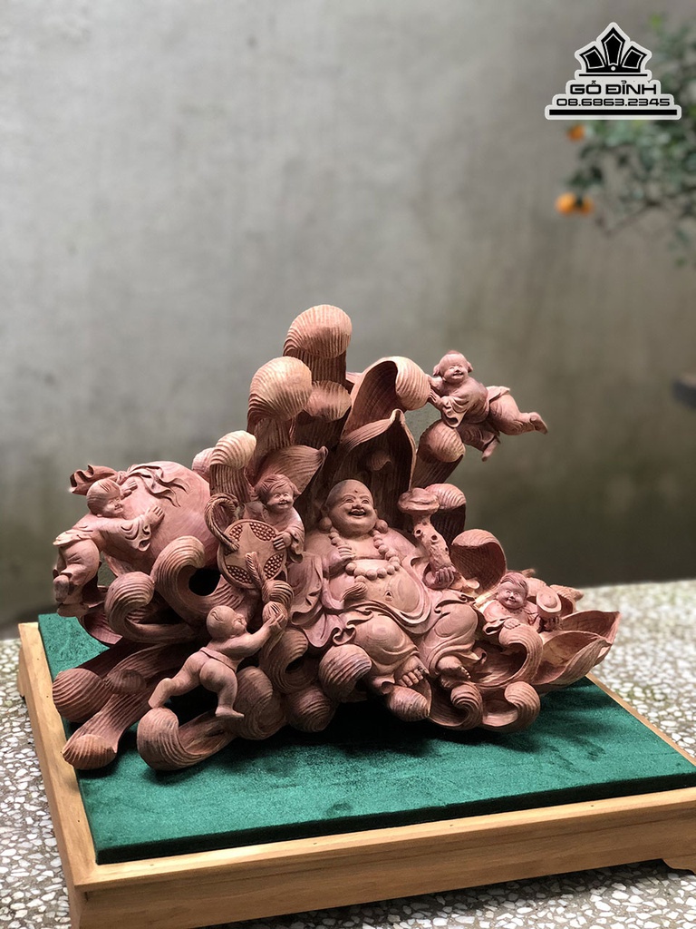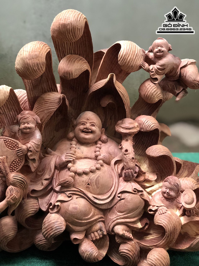 Tượng Phật Di Lặc Ngũ Phúc Gỗ Tùng Đỏ
