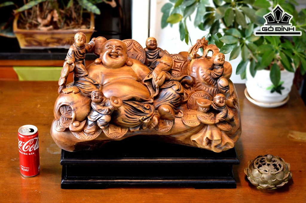 Tượng Phật Di Lặc Ngũ Phúc Gỗ Xá Xị Cao 40 Ngang 55 Sâu 26 (cm)