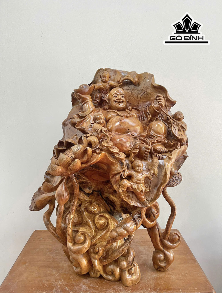 Tượng Phật Di Lặc Ngũ Phúc Gỗ Xá Xị Cao 80 Ngang 60 Sâu 45 (cm)