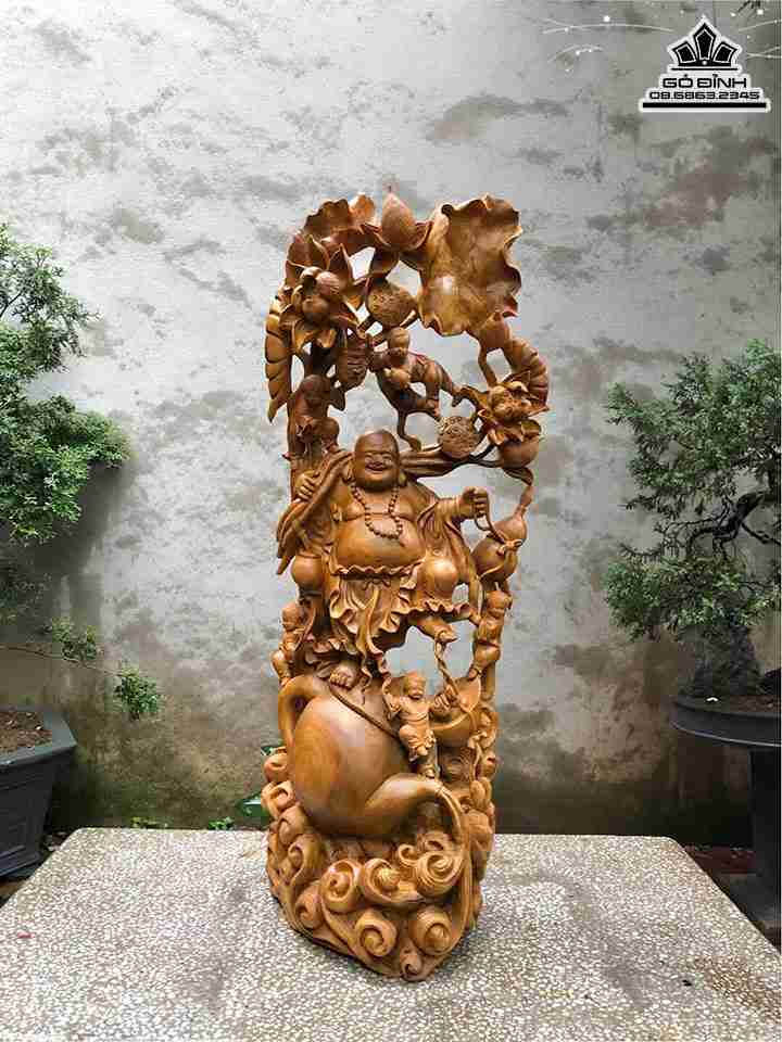 Tượng Phật Di Lặc Ngũ Phúc Gỗ Xá Xị (Gù Hương) Cao 118 Ngang 48 Sâu 40 (cm)