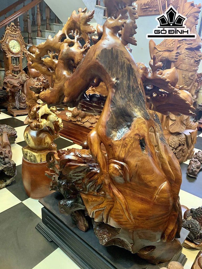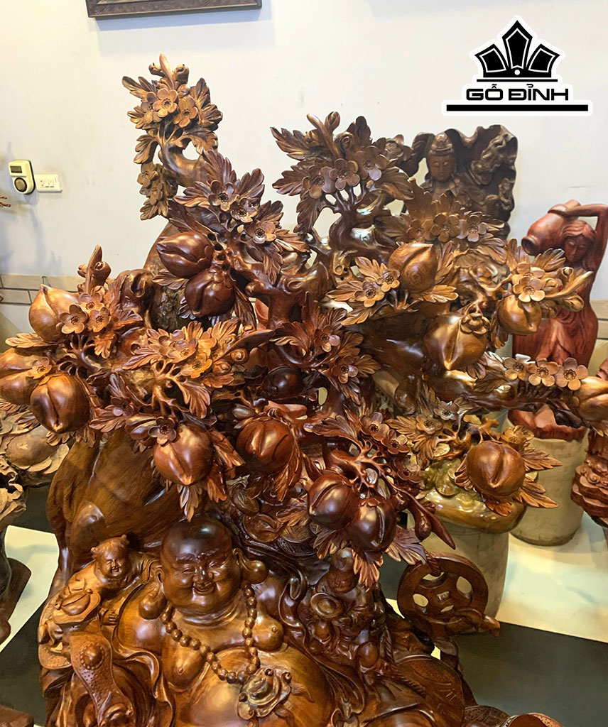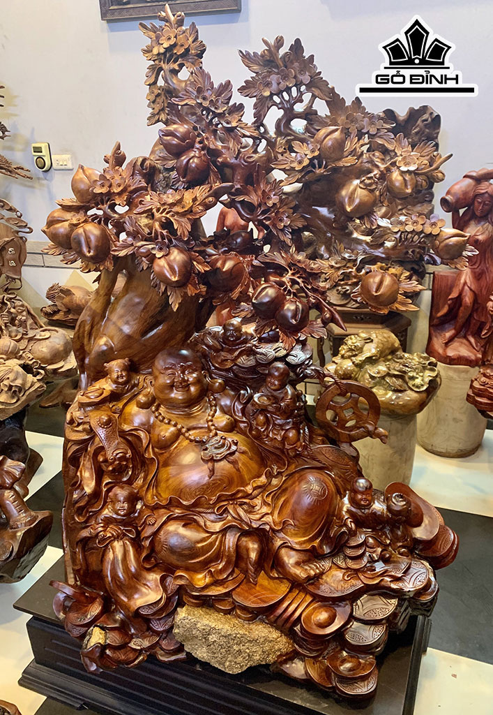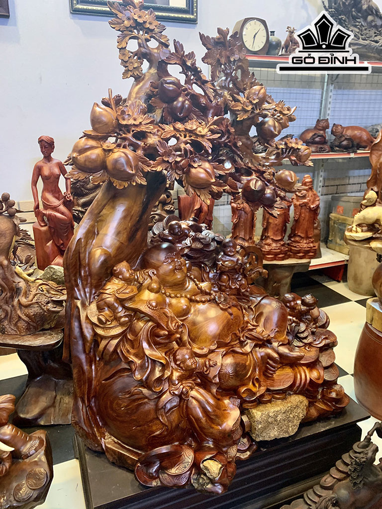 Tượng Phật Di Lặc Ngũ Phúc Ngồi Đào Gỗ Hương Cao 128 Ngang 95 Sâu 62 (cm)
