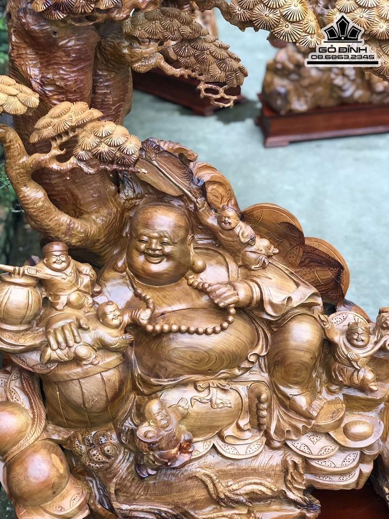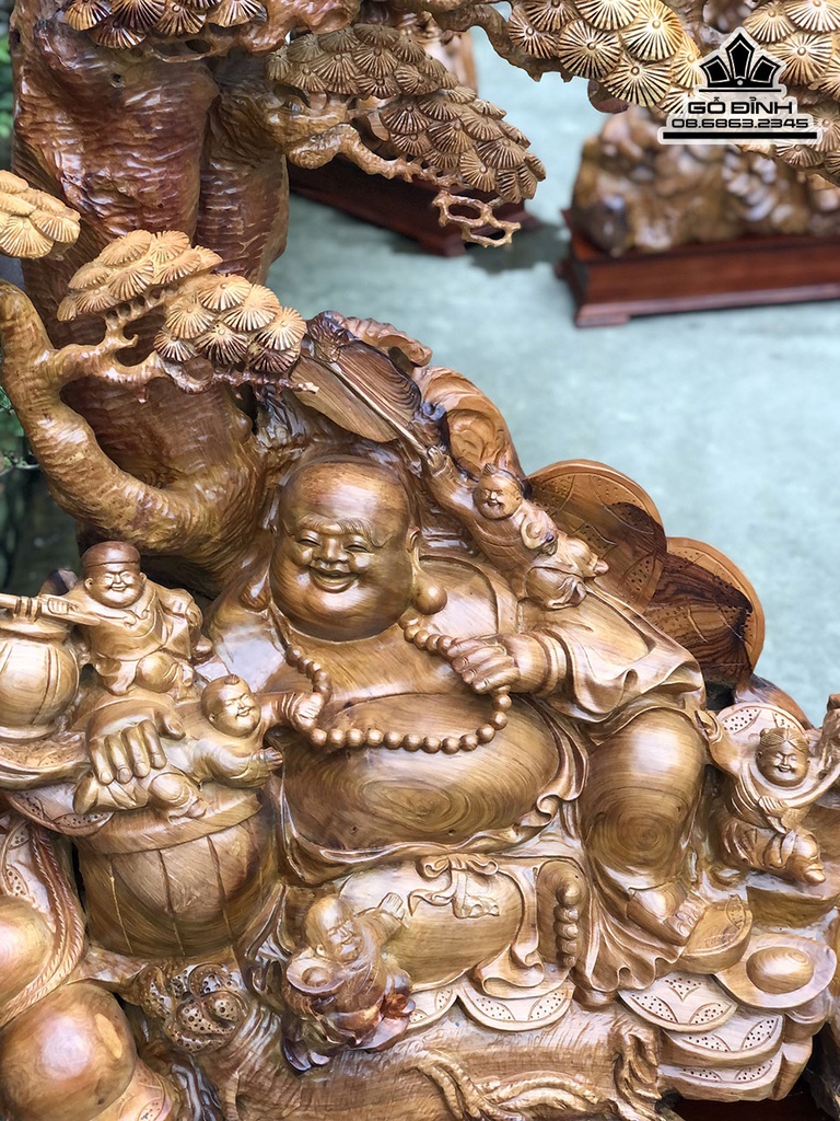 Tượng Phật Di Lặc Ngũ Phúc Ngồi Gốc Tùng Gỗ Hương