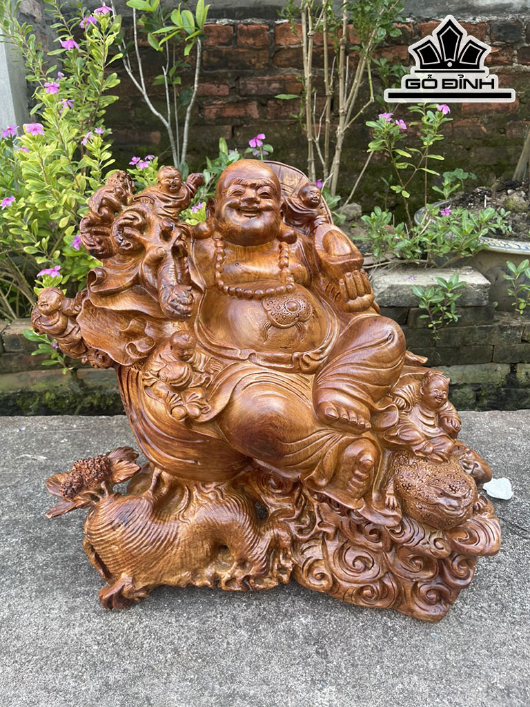 Tượng Phật Di Lặc Ngũ Phúc Ngồi Sâm Gỗ Hương Cao 52 Ngang 60 Sâu 45 (cm)