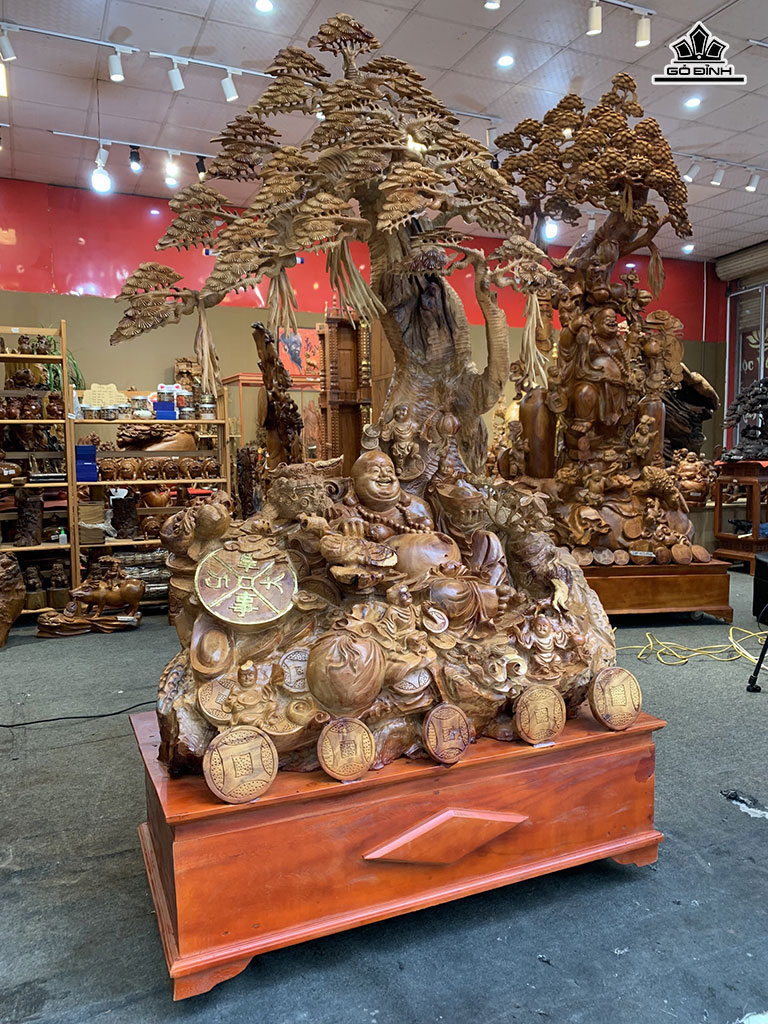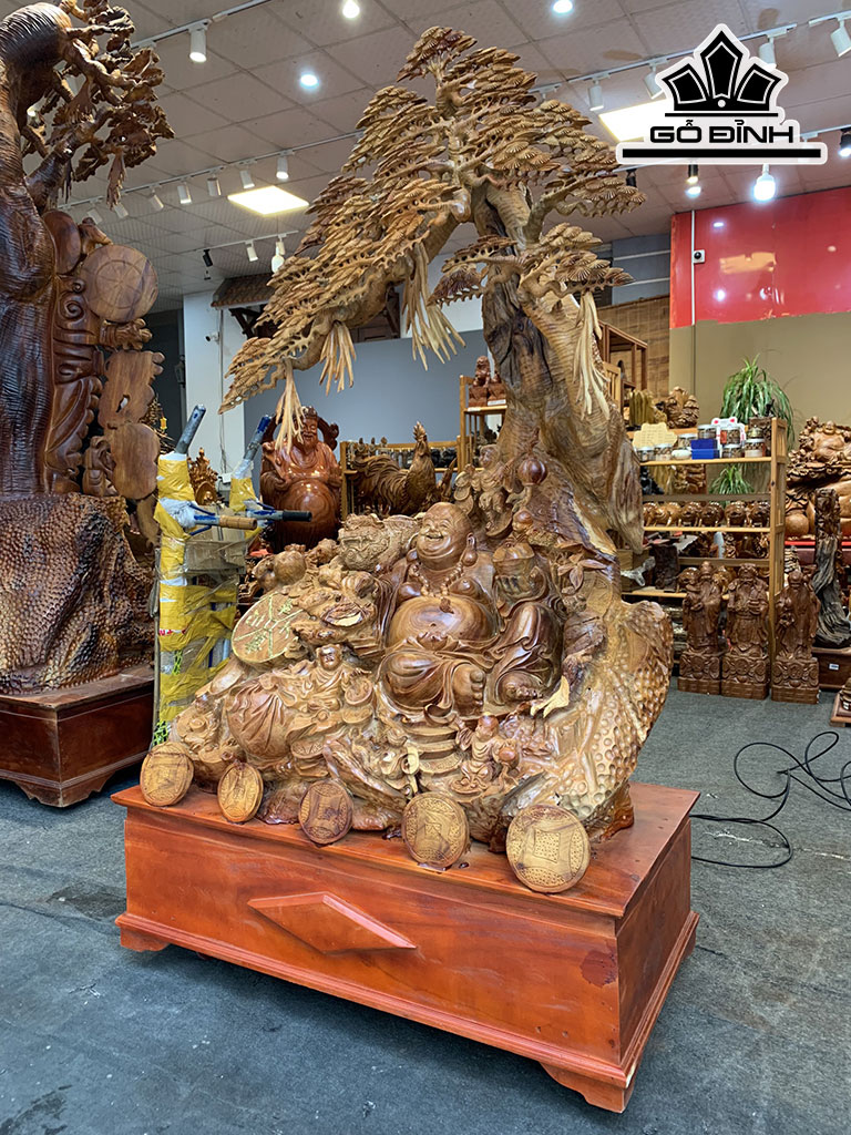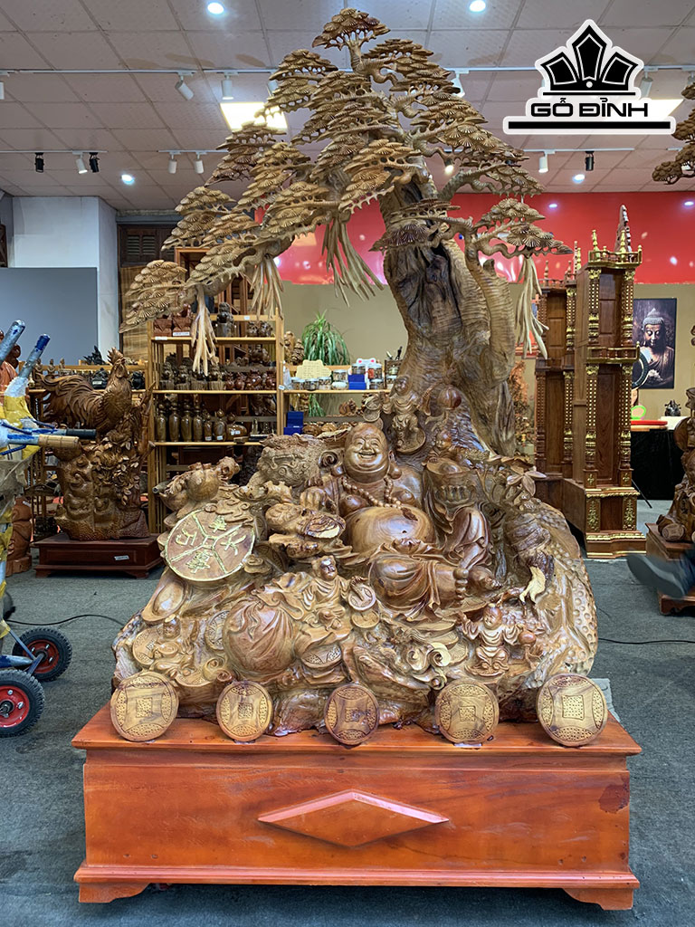 Tượng Phật Di Lặc Ngũ Phúc Ngự Cây Tùng Cao 185 Ngang 100 Sâu 55 (cm)