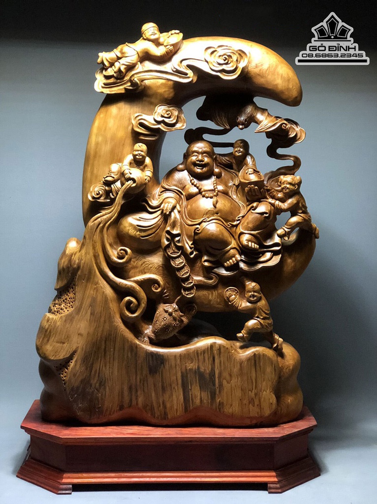 Tượng Phật Di Lặc Ngũ Phúc Ngự Cung Trăng Cao 99 Ngang 60 Sâu 24 (cm)