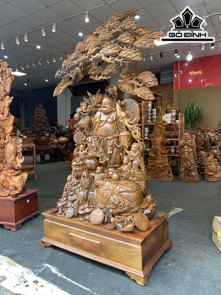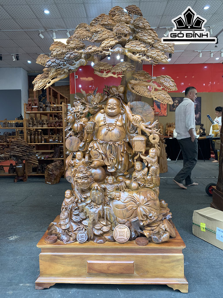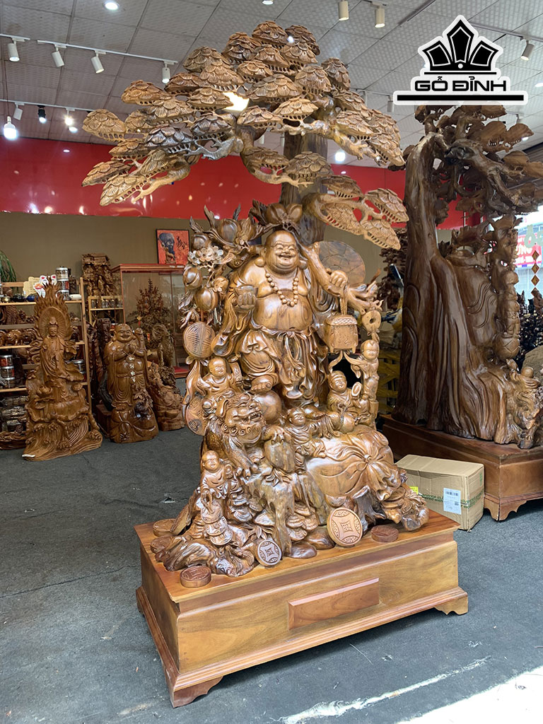 Tượng Phật Di Lặc Ngũ Phúc Ngự Gốc Tùng Cao 186 Ngang 102 Sâu 50 (cm)