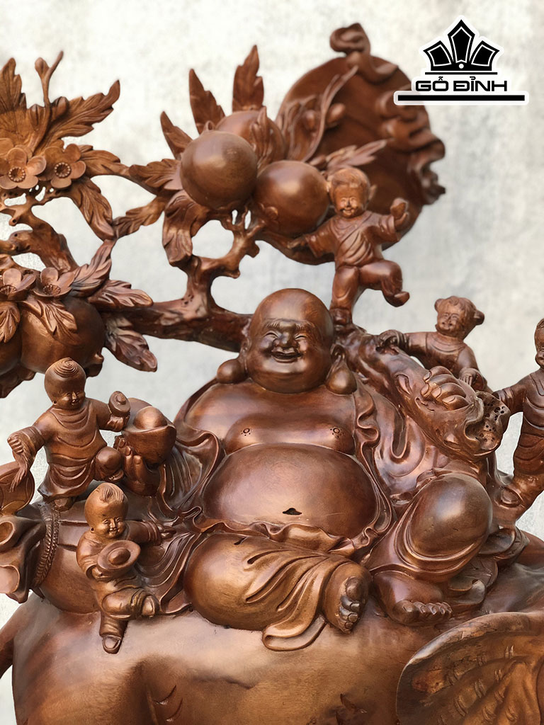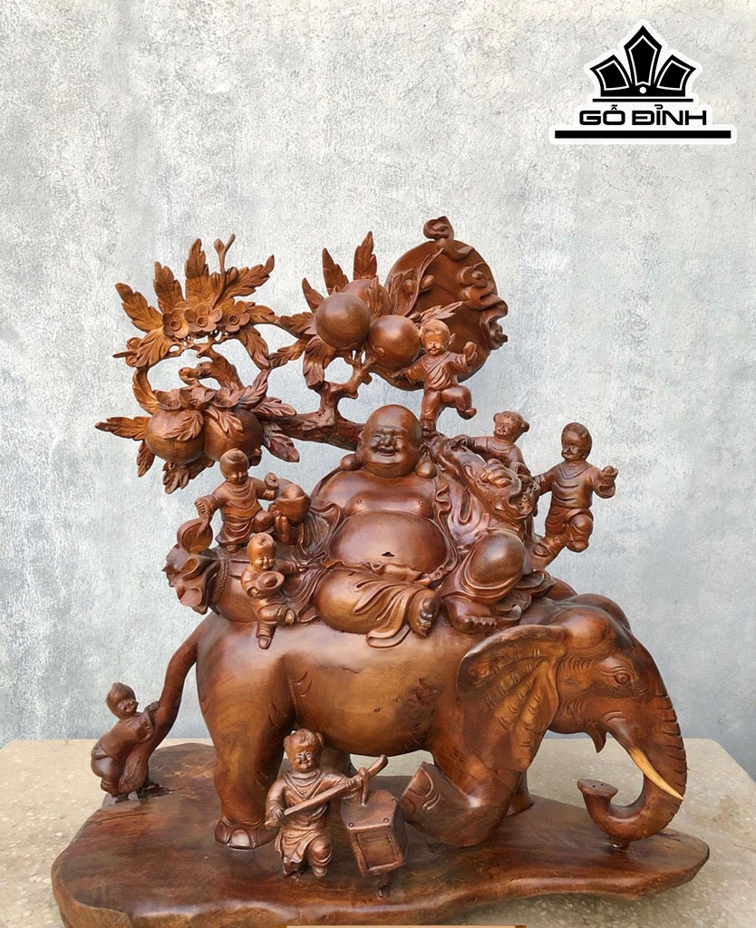 Tượng Phật Di Lặc Ngũ Phúc Ngự Voi Gỗ Xá Xị