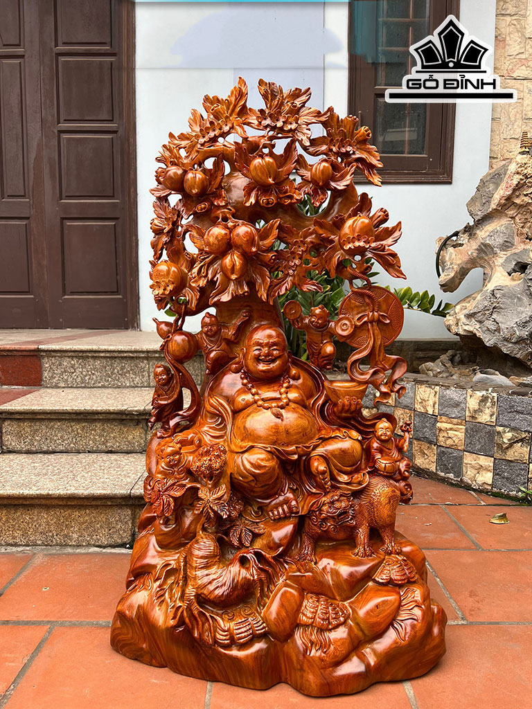 Tượng Phật Di Lặc Ngũ Phúc Thuần Nghê Gỗ Hương Cao 102 Ngang 57 Sâu 36 (cm)