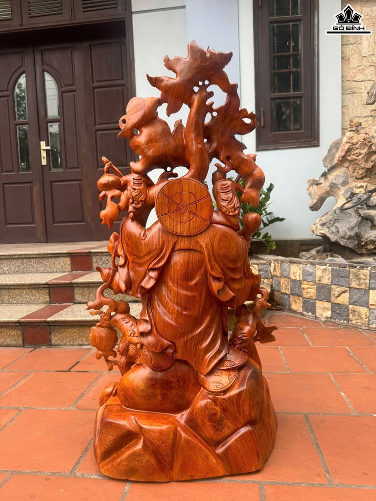 Tượng Phật Di Lặc Ngũ Phúc Thuần Nghê Gỗ Hương Cao 104 Ngang 54 Sâu 31 (cm)