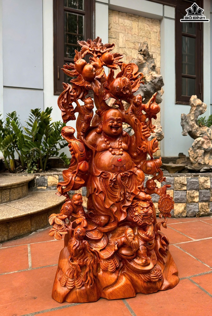 Tượng Phật Di Lặc Ngũ Phúc Thuần Nghê Gỗ Hương