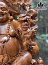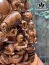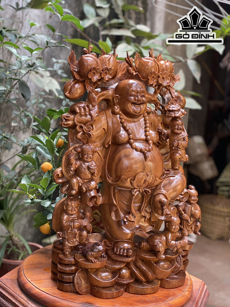 Tượng Phật Di Lặc Ngũ Phúc Vác Cành Đào Gỗ Bách Xanh Cao 64 Ngag 42 Sâu 25 (cm)