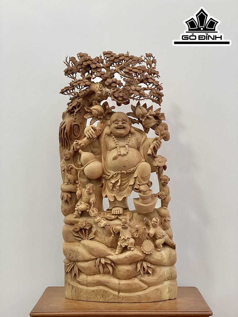 Tượng Phật Di Lặc Ngũ Phúc Vác Đào Gỗ Ngọc Am