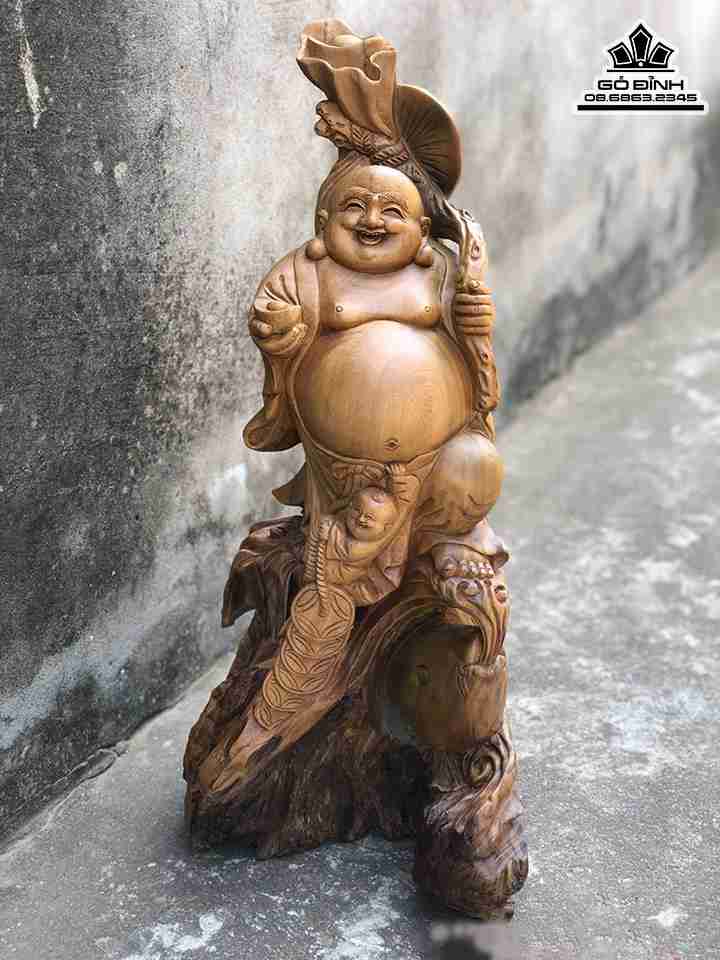 Tượng Phật Di Lặc Nhất Phúc Gỗ Bách Xanh Cao 66 Rộng 32 Dày 23 (cm)
