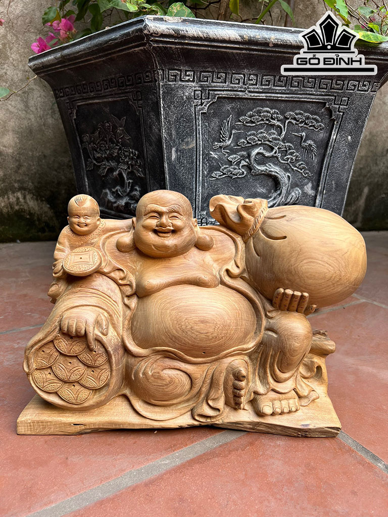 Tượng Phật Di Lặc Nhất Phúc Gỗ Bách Xanh Cao 26 Ngang 37 Sâu 13 (cm)