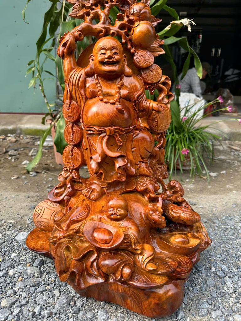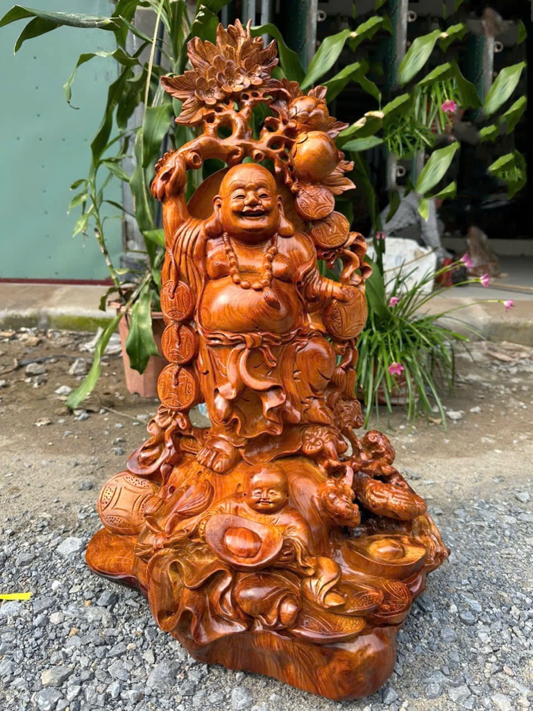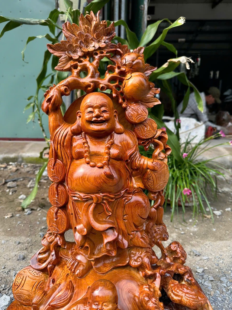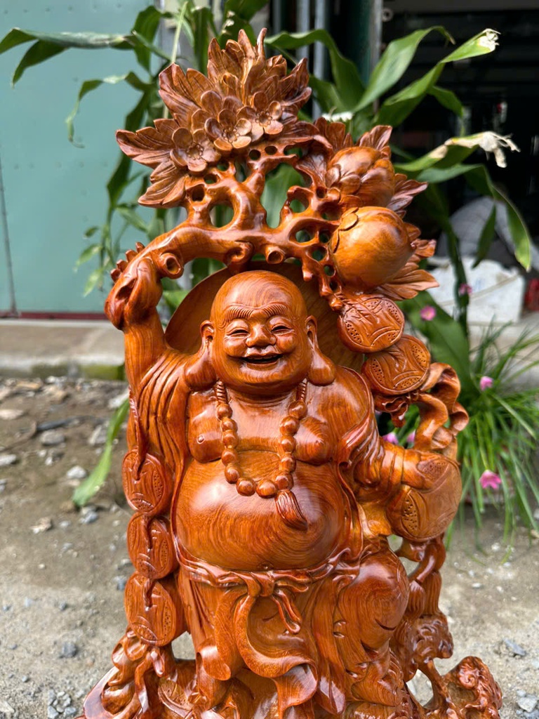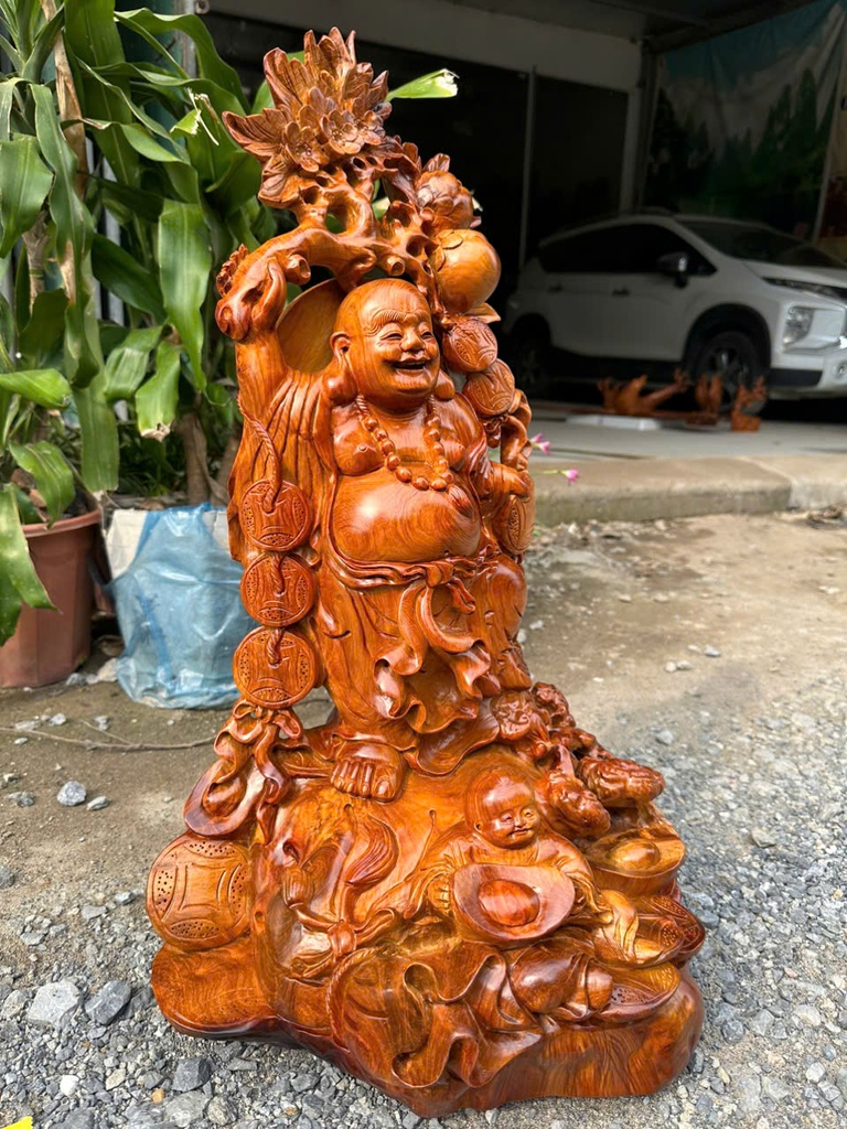 Tượng Phật Di Lặc Nhất Phúc Gỗ Hương Cao 65 Ngang 41 Sâu 30 (cm)