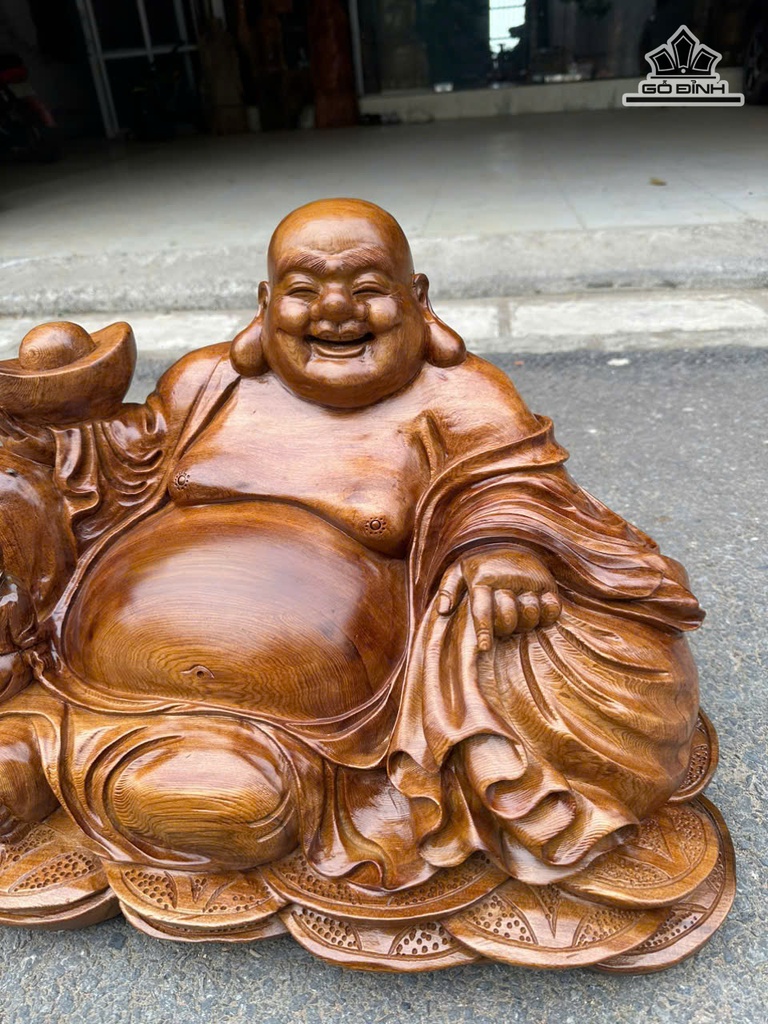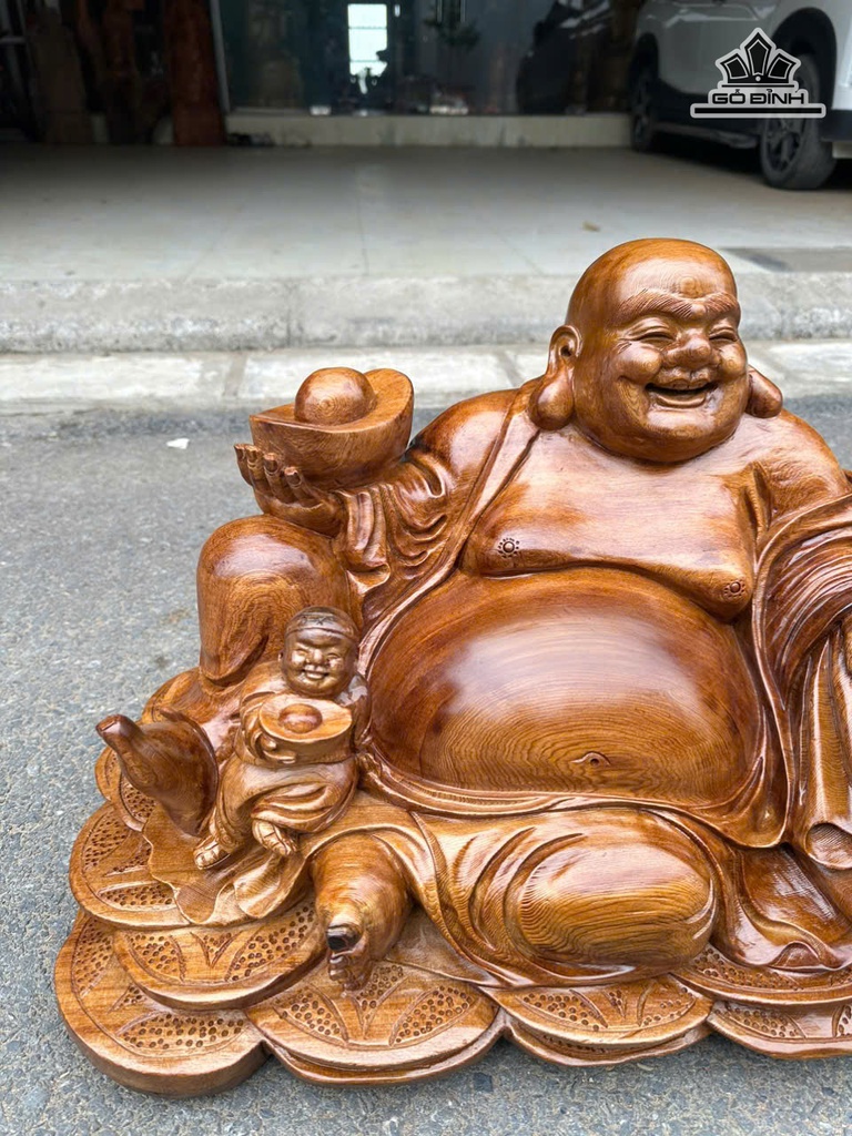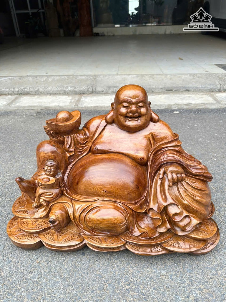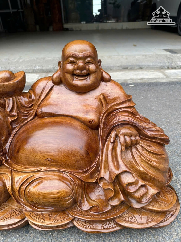 Tượng Phật Di Lặc Nhất Phúc Gỗ Ngọc Am Cao 37 Ngang 57 Sâu 29 (cm)
