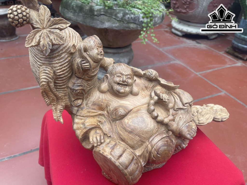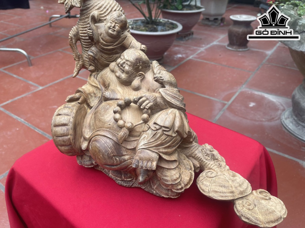 Tượng Phật Di Lặc Nhất Phúc Gỗ Ngọc Am Cao 41 Ngang 43 Sâu 27 (cm)