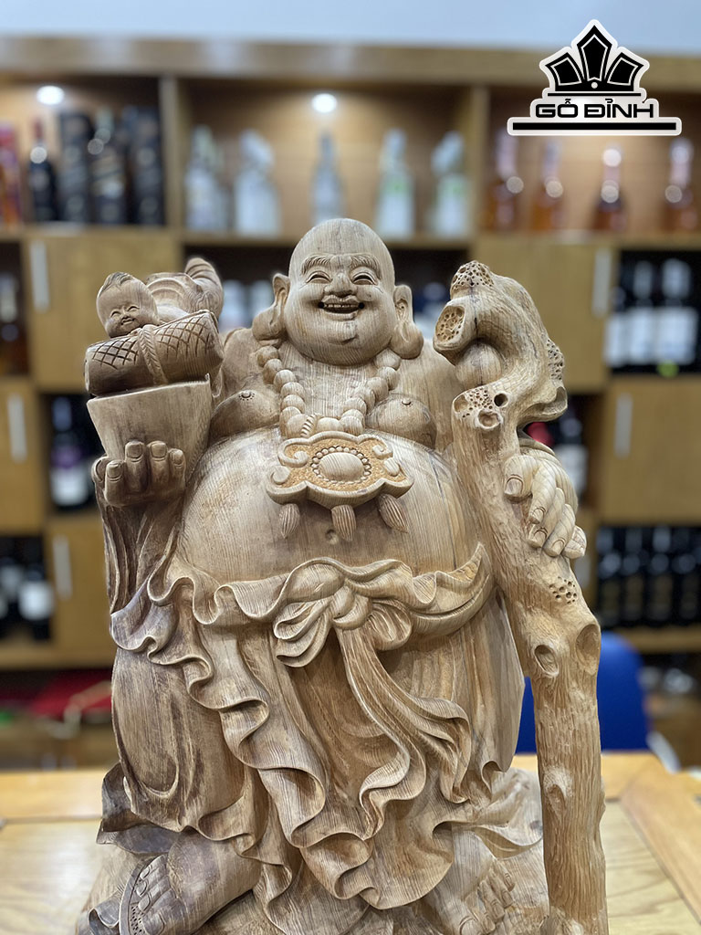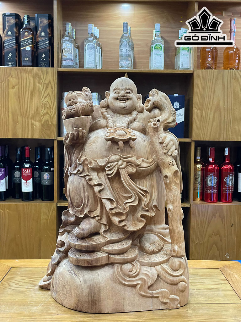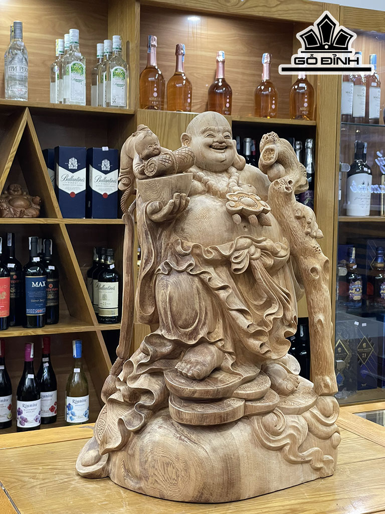 Tượng Phật Di Lặc Nhất Phúc Gỗ Ngọc Am Cao 56 Ngang 37 Sâu 30 (cm)