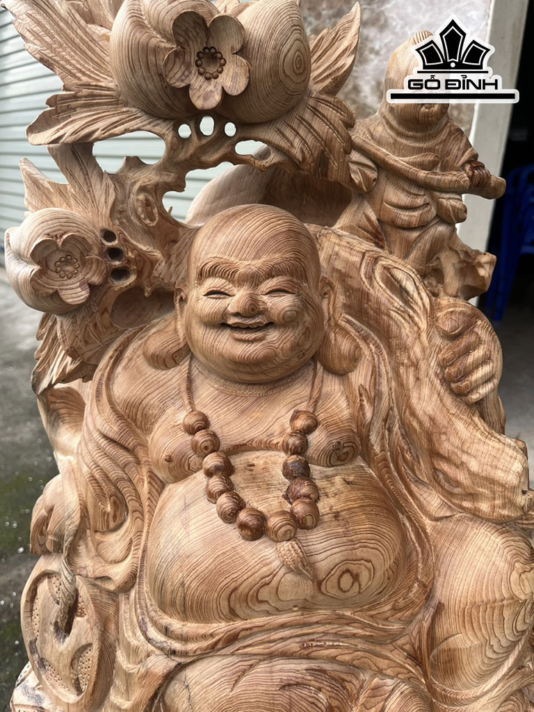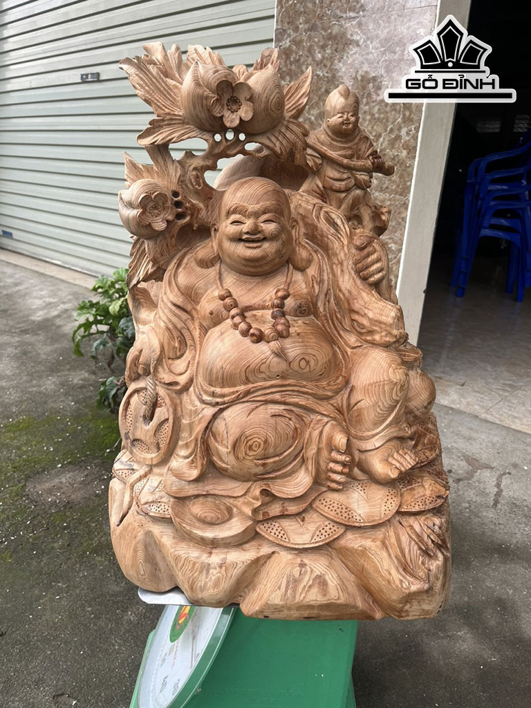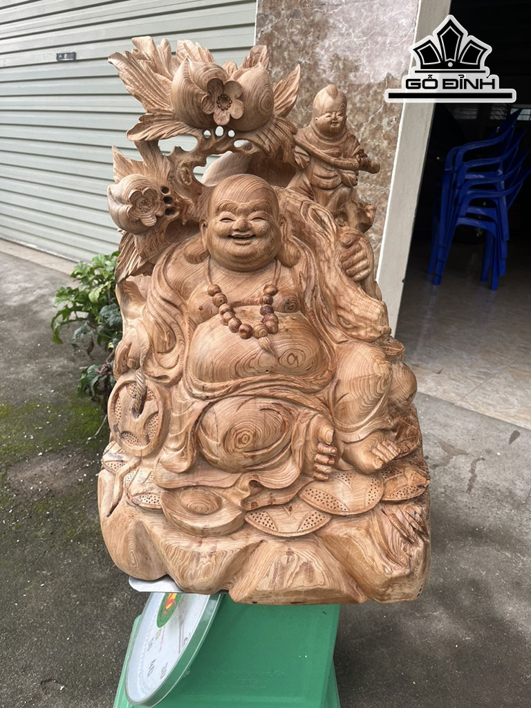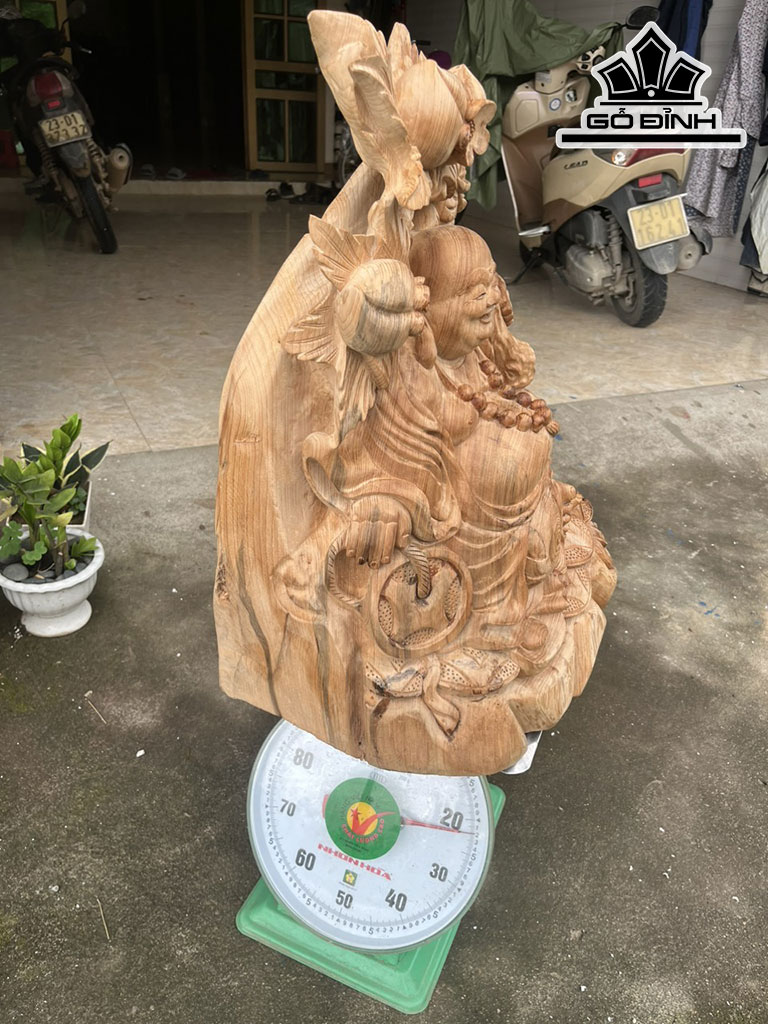 Tượng Phật Di Lặc Nhất Phúc Gỗ Ngọc Am Cao 60 Ngang 42 Sâu 28 (cm)