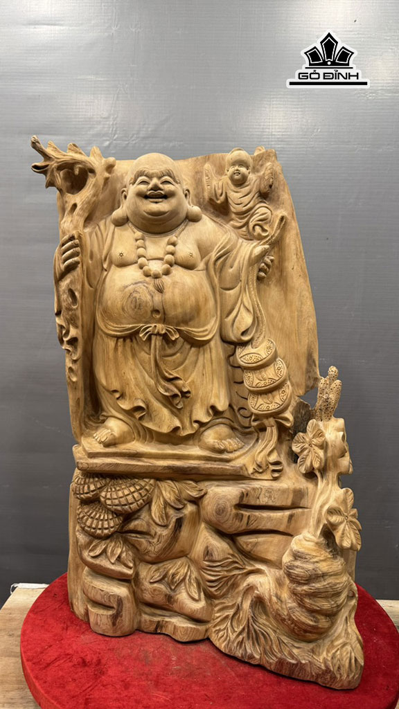 Tượng Phật Di Lặc Nhất Phúc Gỗ Ngọc Am Cao 75 Ngang 46 Sâu 22 (cm) 22kg