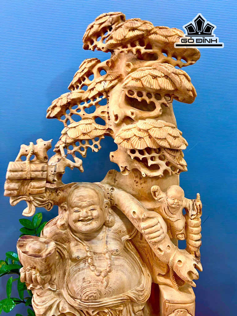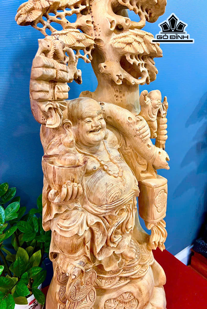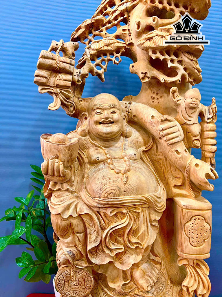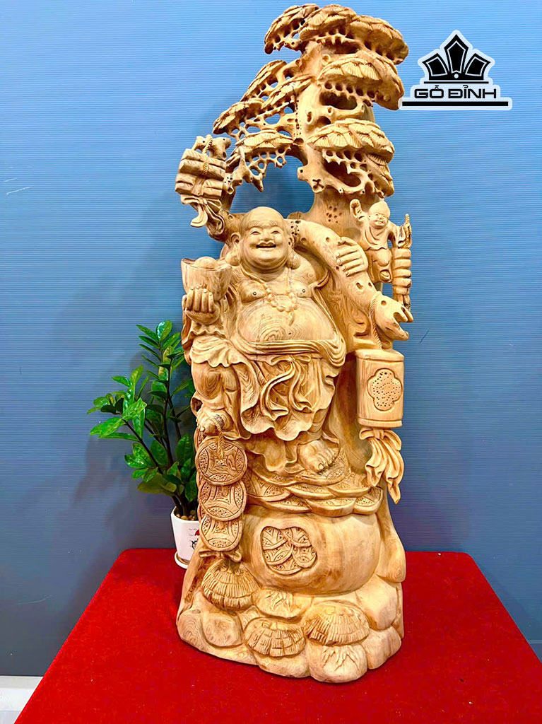 Tượng Phật Di Lặc Nhất Phúc Gỗ Ngọc Am Cao 92 Ngang 40 Sâu 30 (cm)