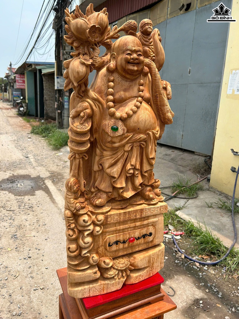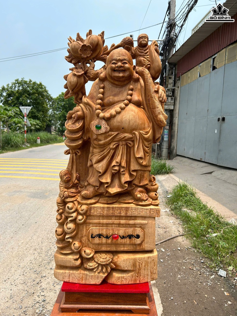 Tượng Phật Di Lặc Nhất Phúc Gỗ Ngọc Am Cao 96 Ngang 40 Sâu 17 (cm)