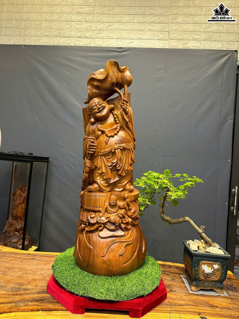 Tượng Phật Di Lặc Nhất Phúc Gỗ Ngọc Am Cao 98 Ngang 36 Sâu 22 (cm)