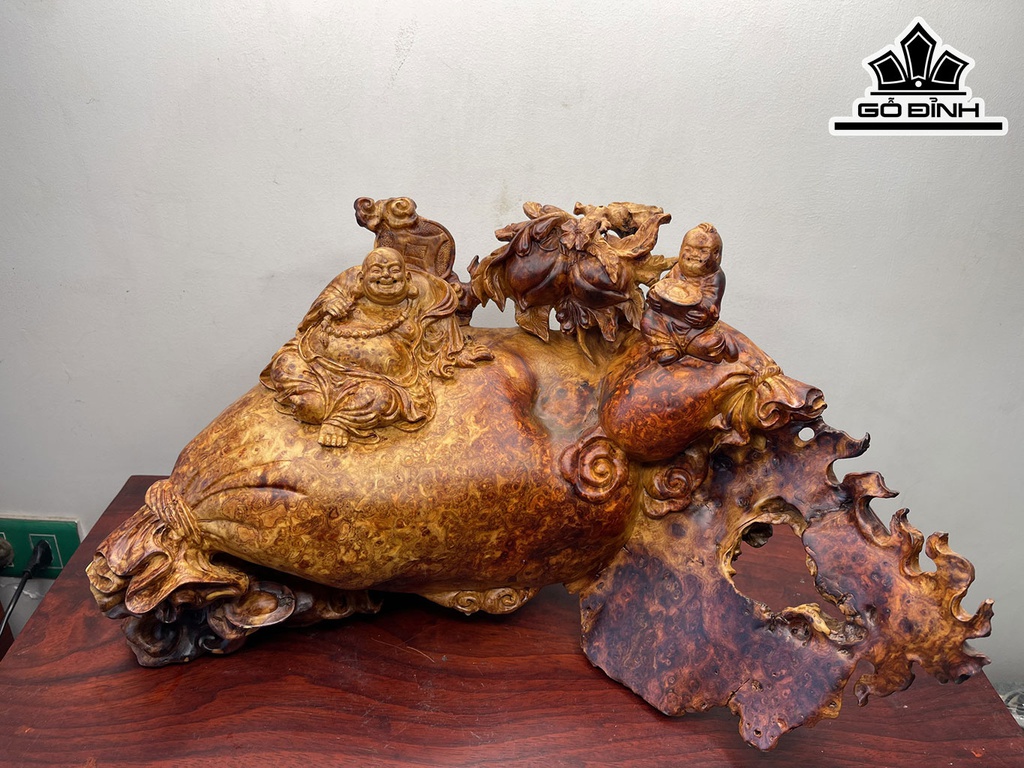 Tượng Phật Di Lặc Nhất Phúc Gỗ Nu Hương Cao 28 Ngang 45 Sâu 28 (cm)
