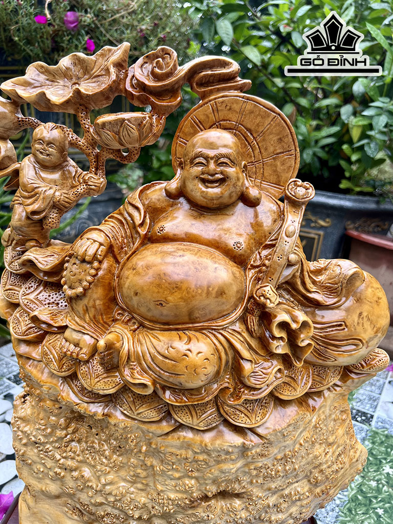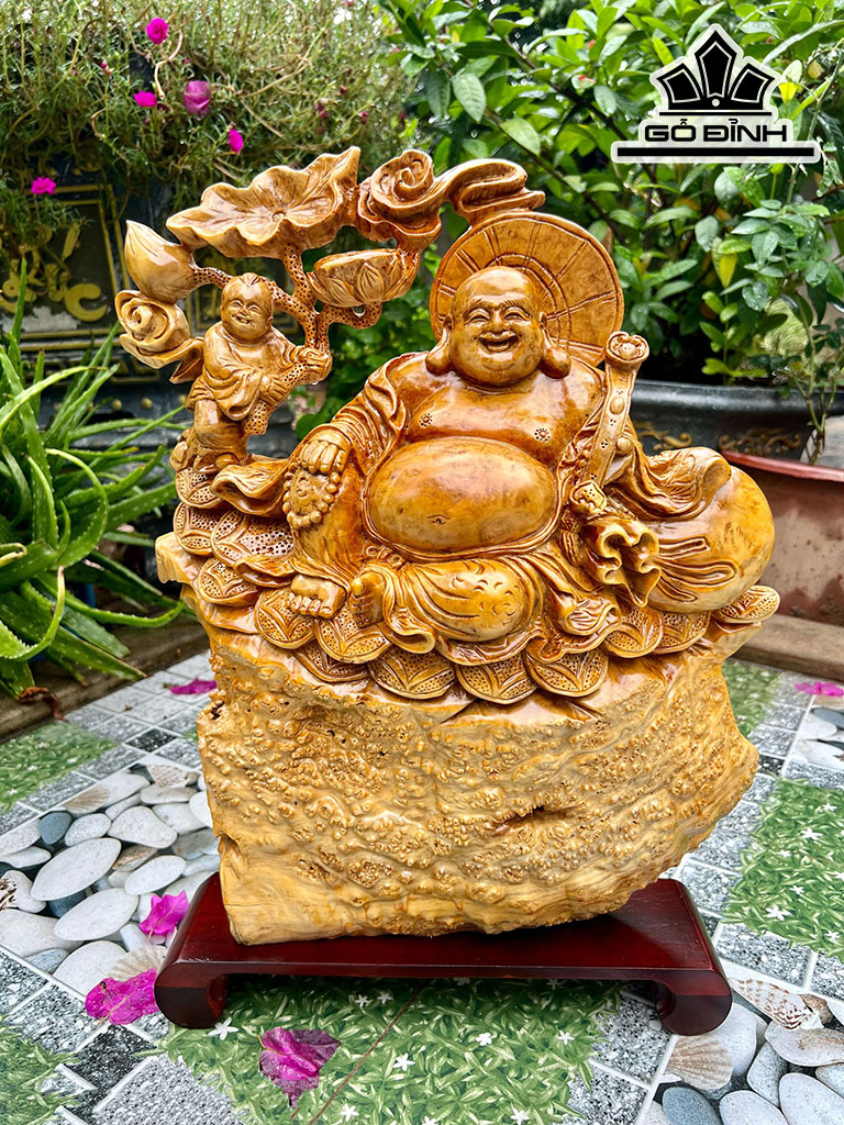 Tượng Phật Di Lặc Nhất Phúc Gỗ Nu Kháo Cao 42 Ngang 35 Sâu 9 (cm)