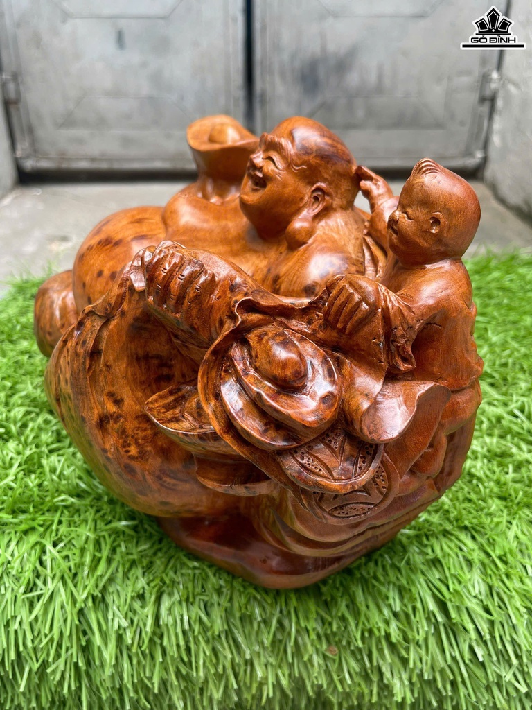 Tượng Phật Di Lặc Nhất Phúc Gỗ Nu Ngọc Am Cao 21 Ngang 33 Sâu 18 (cm)
