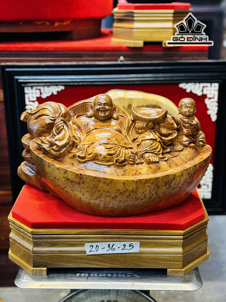 Tượng Phật Di Lặc Nhất Phúc Gỗ Nu Ngọc Am Riêng Tượng Cao 20 Ngang 36 Sâu 25 (cm)