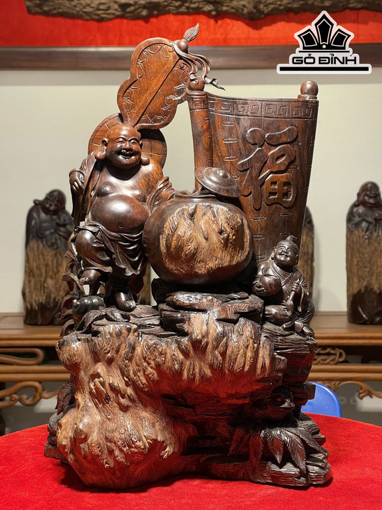 Tượng Phật Di Lặc Nhất Phúc Gỗ Nu Trắc Cao 42 Ngang 30 Sâu 16 (cm)