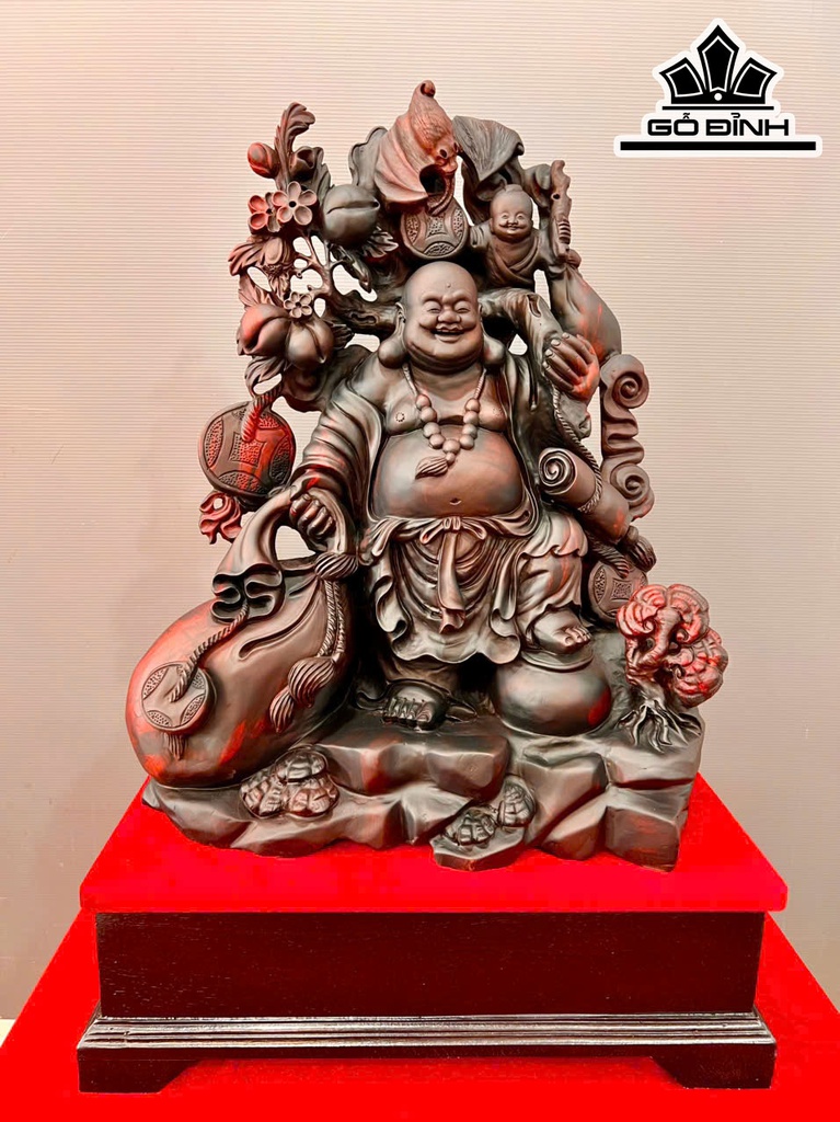 Tượng Phật Di Lặc Nhất Phúc Gỗ Trắc Cao 76 Ngang 51 Sâu 27 (cm)