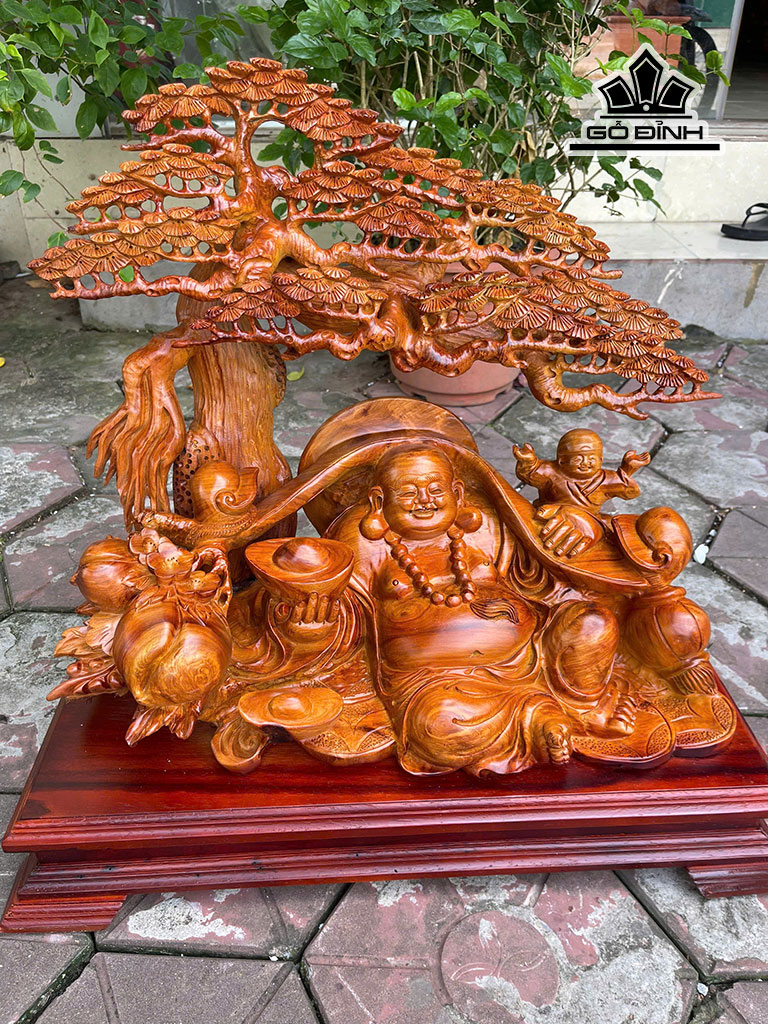 Tượng Phật Di Lặc Nhất Phúc Ngự Gốc Tùng Gỗ Hương Cao Cả Kỷ 55 - Riêng Kỷ Cao 10 Ngang 51 Sâu 28 (cm)