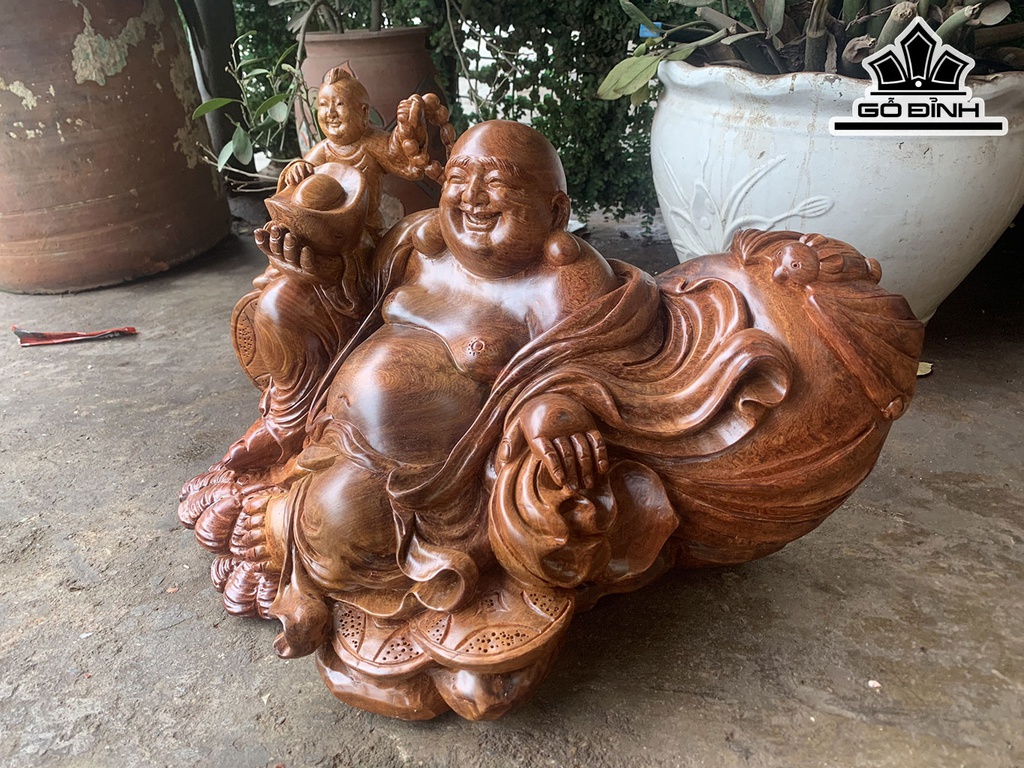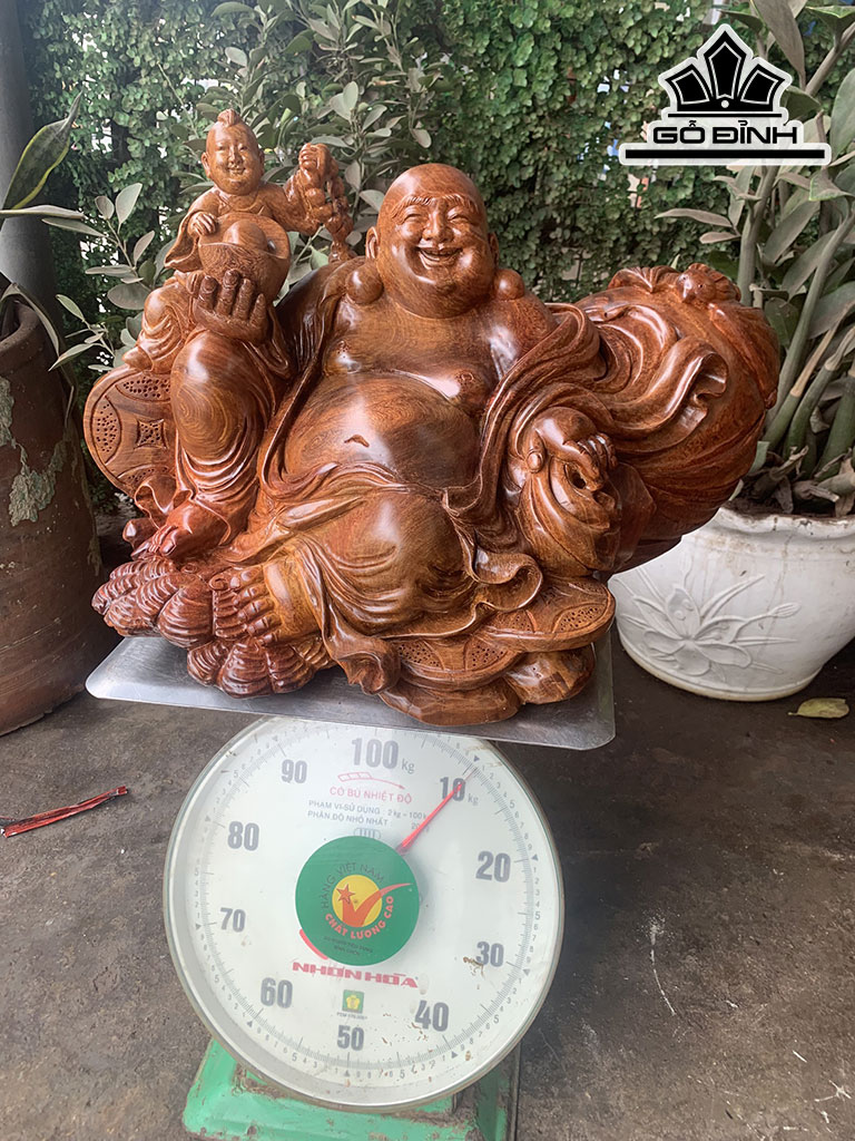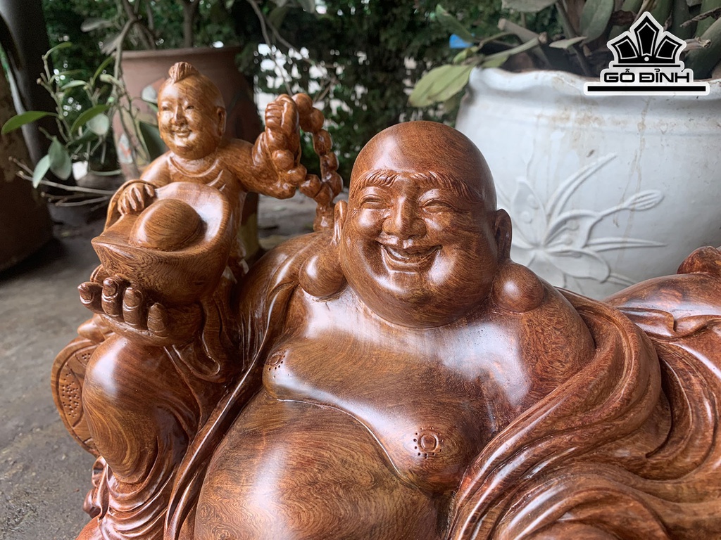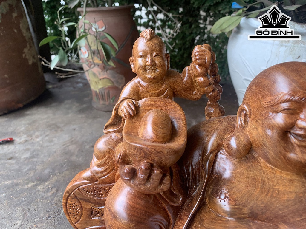 Tượng Phật Di Lặc Nhất Phúc Vác Bao Tiền Gỗ Hương Cao 48 Ngang 31 Sâu 25 (cm)