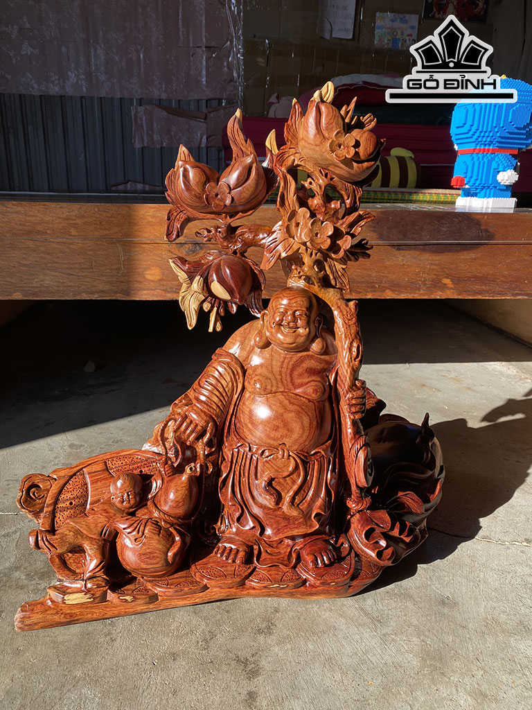 Tượng Phật Di Lặc Nhất Phúc Vác Đào Gỗ Cẩm Cao 60 Ngang 62 Sâu 20 (cm)
