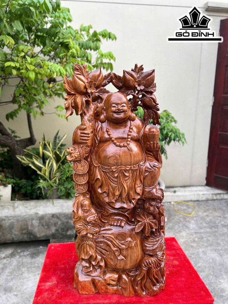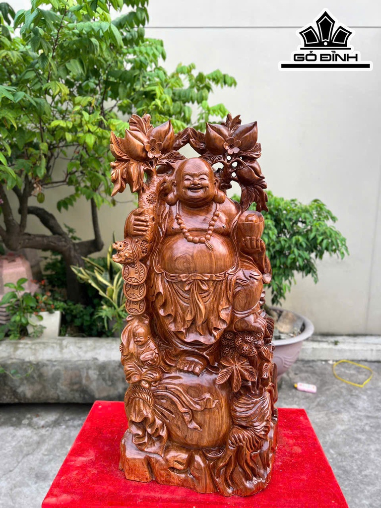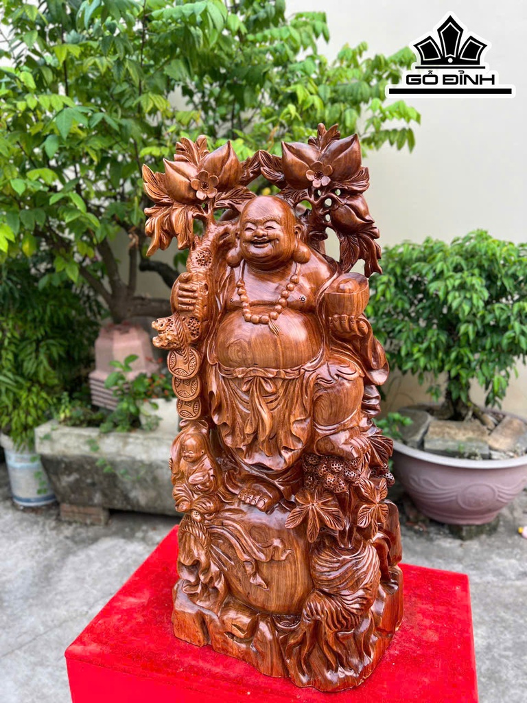 Tượng Phật Di Lặc Nhất Phúc Vác Đào Gỗ Ngọc Am Cao 80 Ngang 35 Sâu 22 (cm)