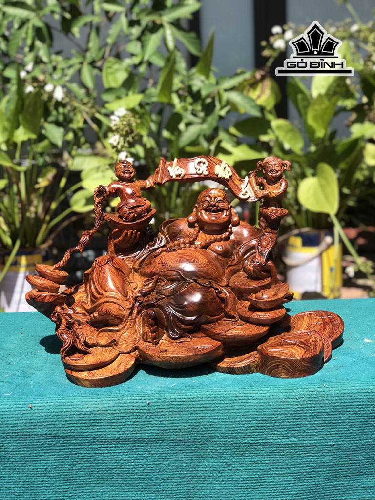 Tượng Phật Di Lặc Nhị Phúc Gỗ Cẩm Cao 29 Ngang 52 Sâu 31 (cm)
