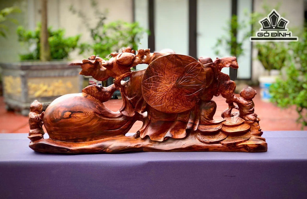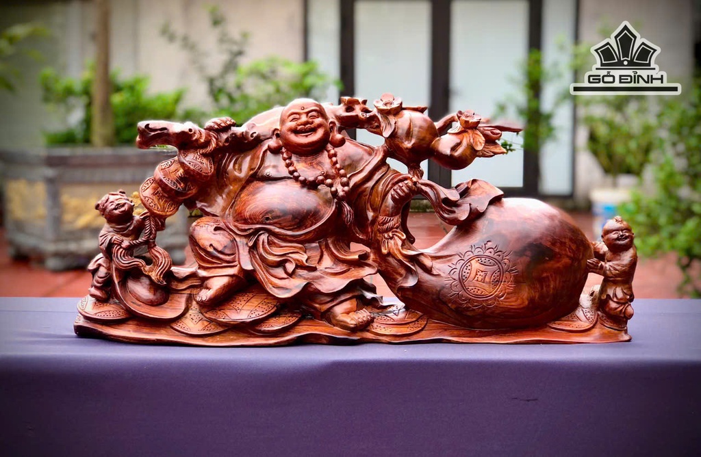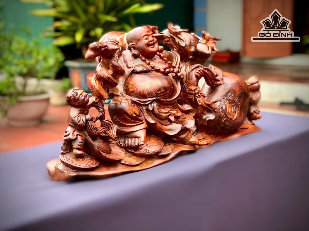 Tượng Phật Di Lặc Nhị Phúc Gỗ Cẩm Cao 32 Ngang 66 Sâu 15 (cm)