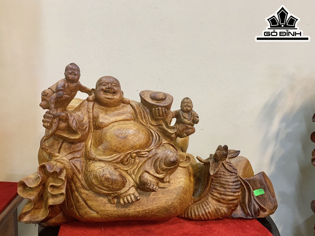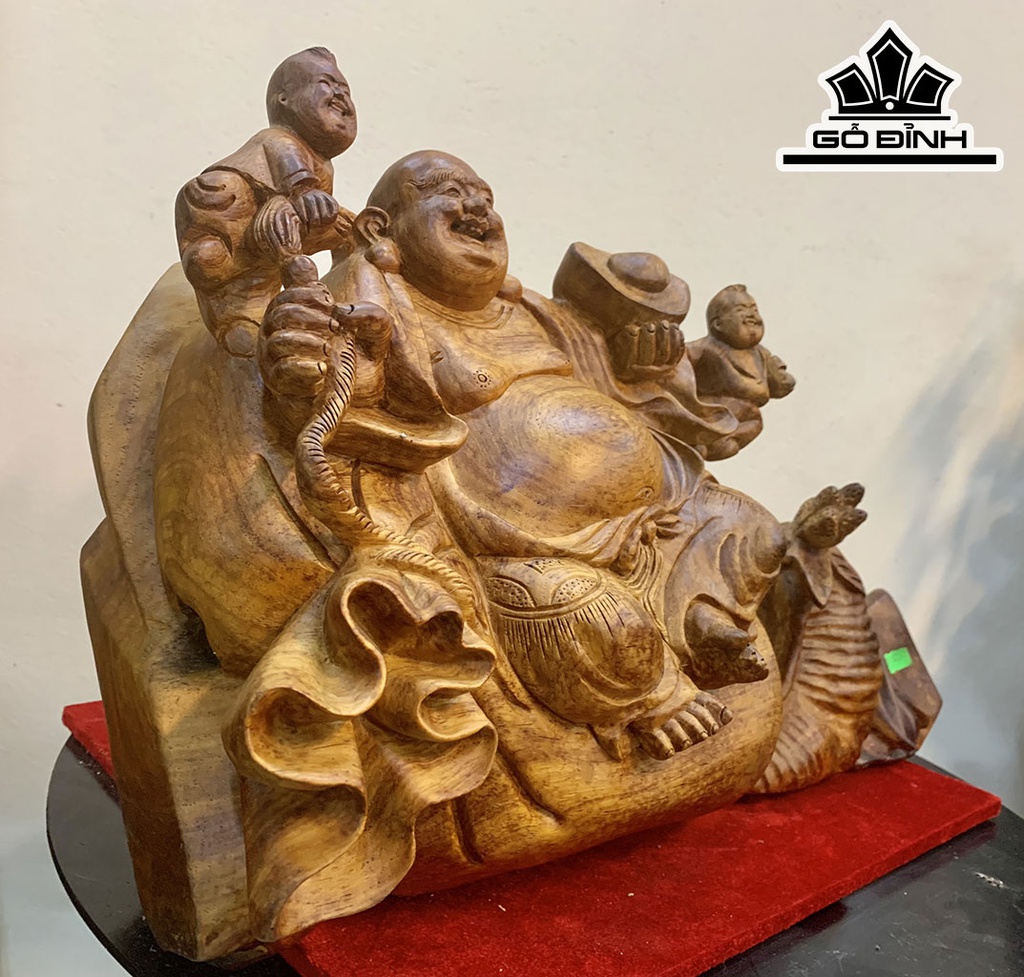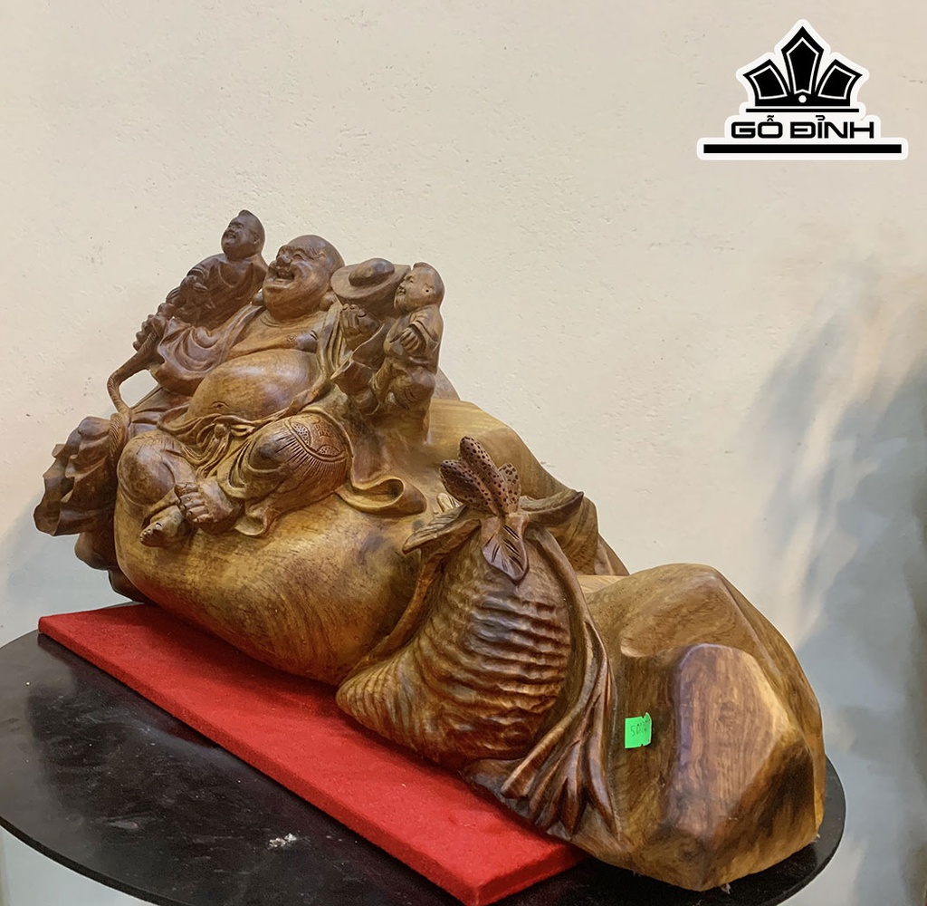 Tượng Phật Di Lặc Nhị Phúc Gỗ Hương Cao 28 Ngang 50 Sâu 20 (cm)