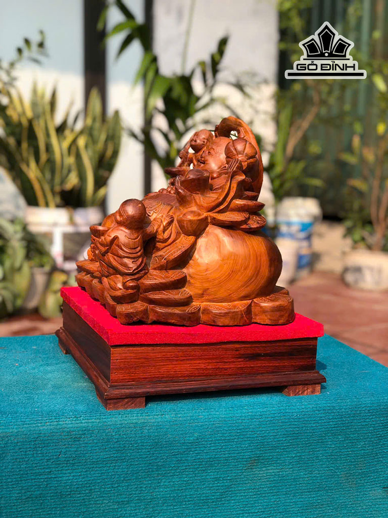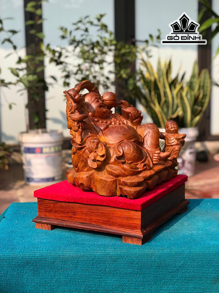 Tượng Phật Di Lặc Nhị Phúc Gỗ Hương Cao 30 Ngang 35 Sâu 32 (cm) - Cả Kỷ Cao 40