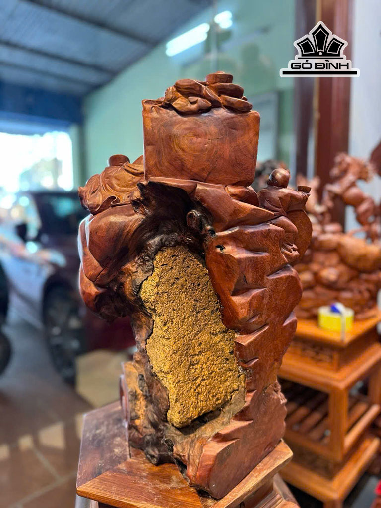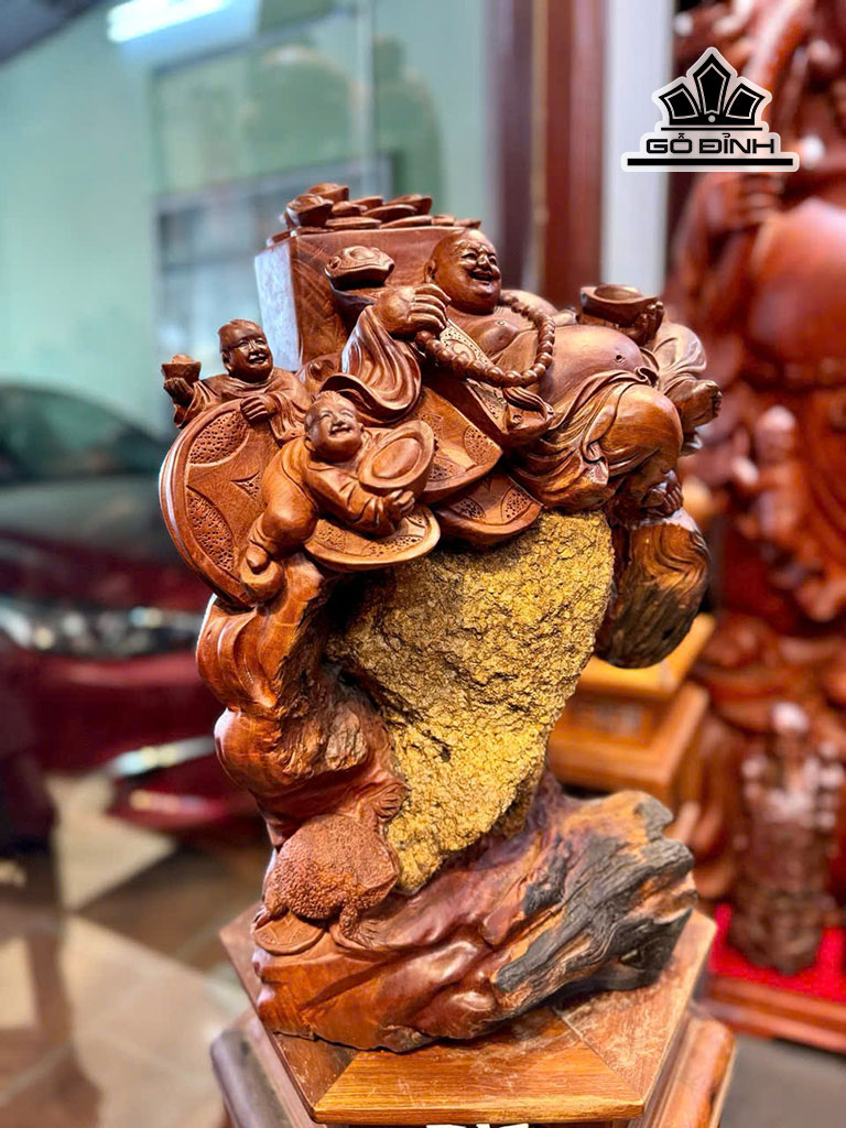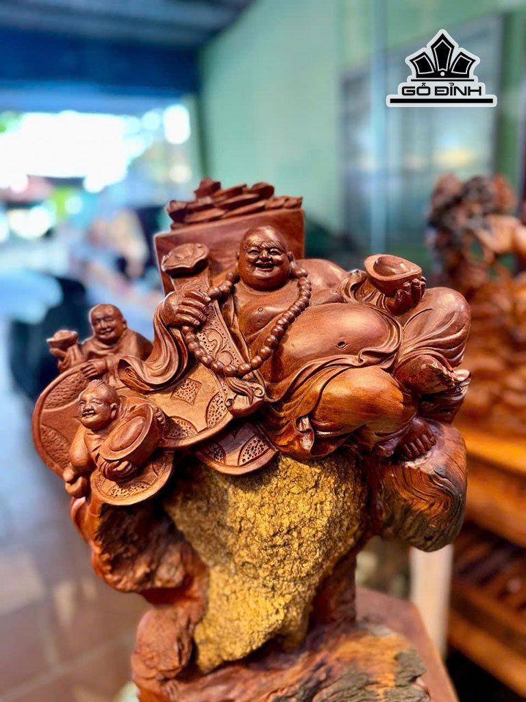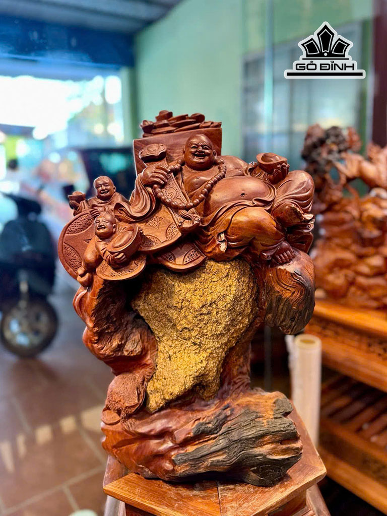 Tượng Phật Di Lặc Nhị Phúc Gỗ Hương Cao 50 Ngang 36 Sâu 25 (cm)