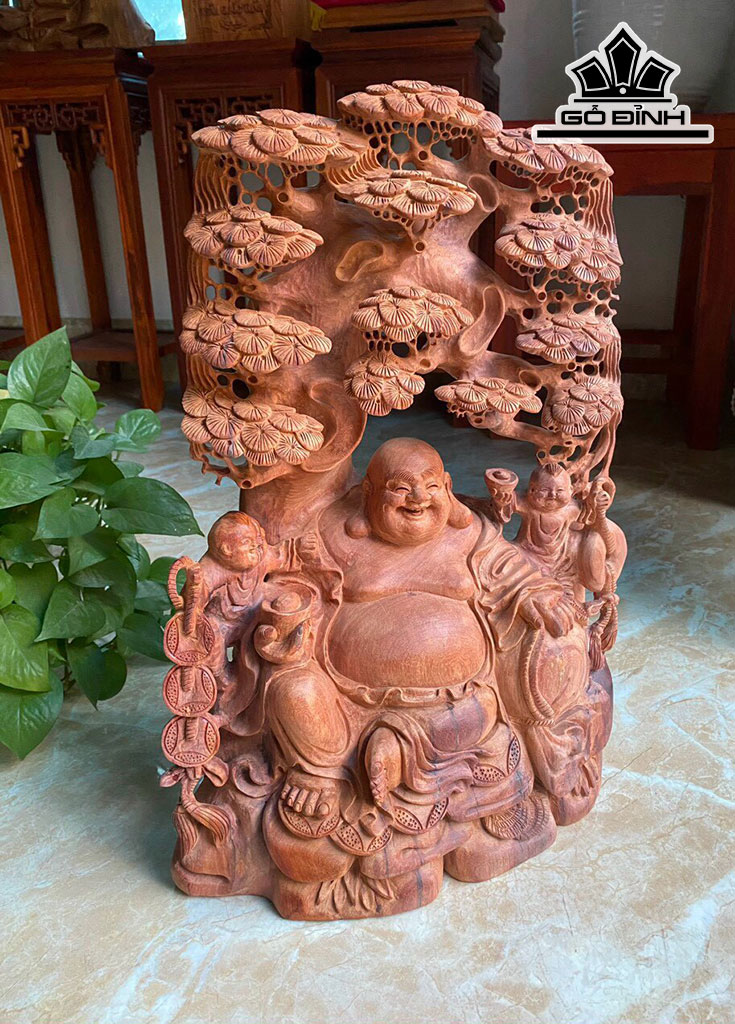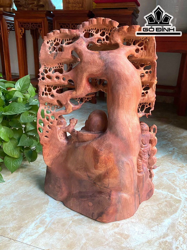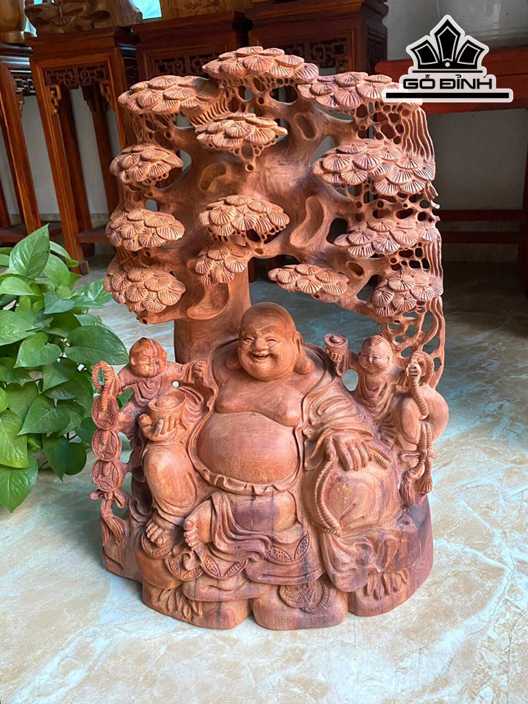 Tượng Phật Di Lặc Nhị Phúc Gỗ Hương Cao 52 Ngang 36 Sâu 22 (cm)