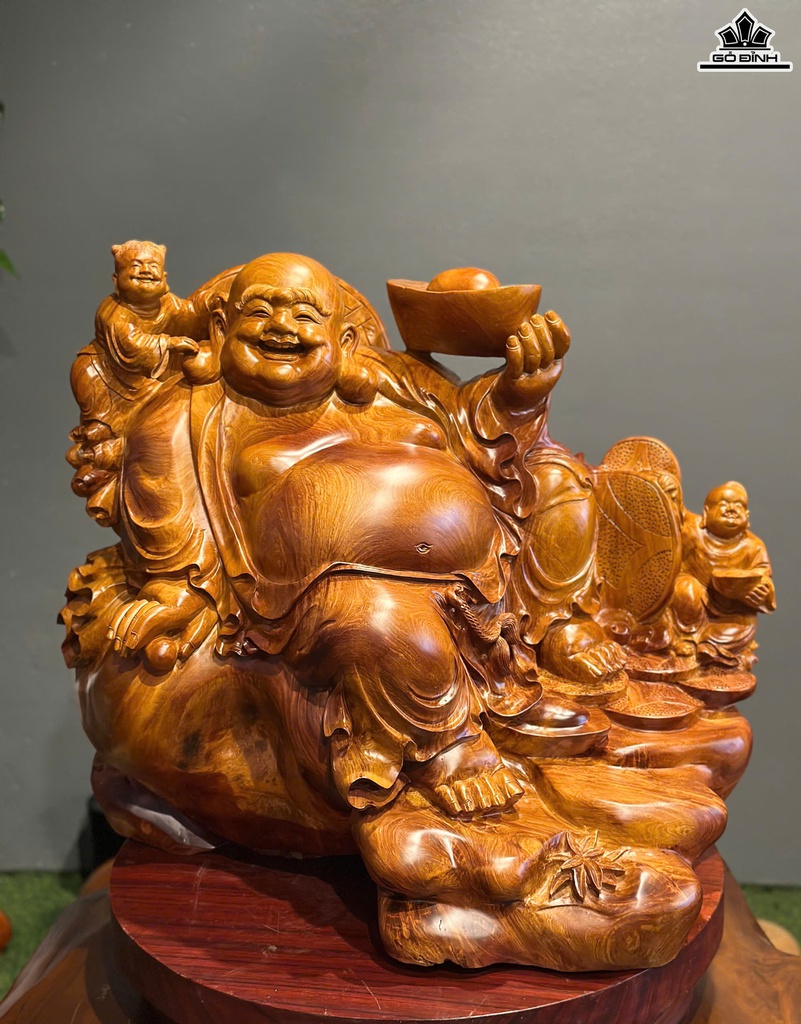 Tượng Phật Di Lặc Nhị Phúc Gỗ Hương Cao 62 Ngang 66 Sâu 40 (cm)