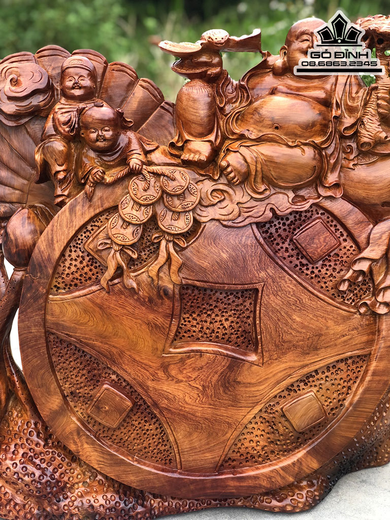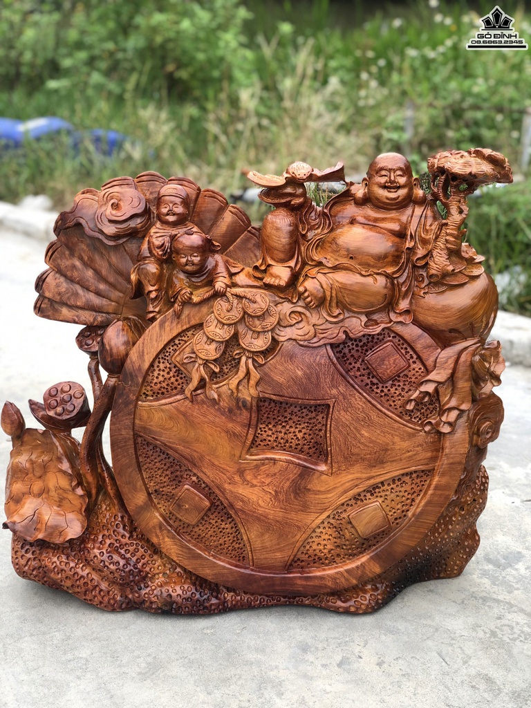 Tượng Phật Di Lặc Nhị Phúc Gỗ Hương Cao 62 Ngang 72 Sâu 22 (cm)
