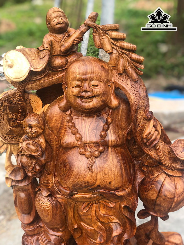 Tượng Phật Di Lặc Nhị Phúc Gỗ Hương Cao 65 Ngang 43 Sâu 22 Cao Cả Kỷ 80 (cm)