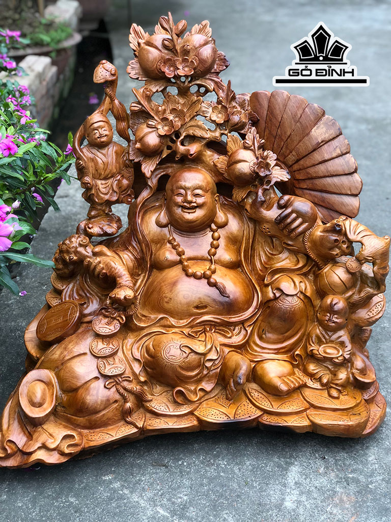 Tượng Phật Di Lặc Nhị Phúc Gỗ Hương Cao 66 Ngang 68 Sâu 52 (cm)